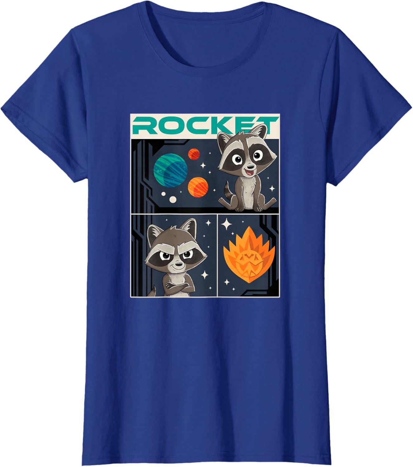 Marvel Guardians of the Galaxy Volume 3 Baby Rocket Panels T-Shirt(Royal Blue)