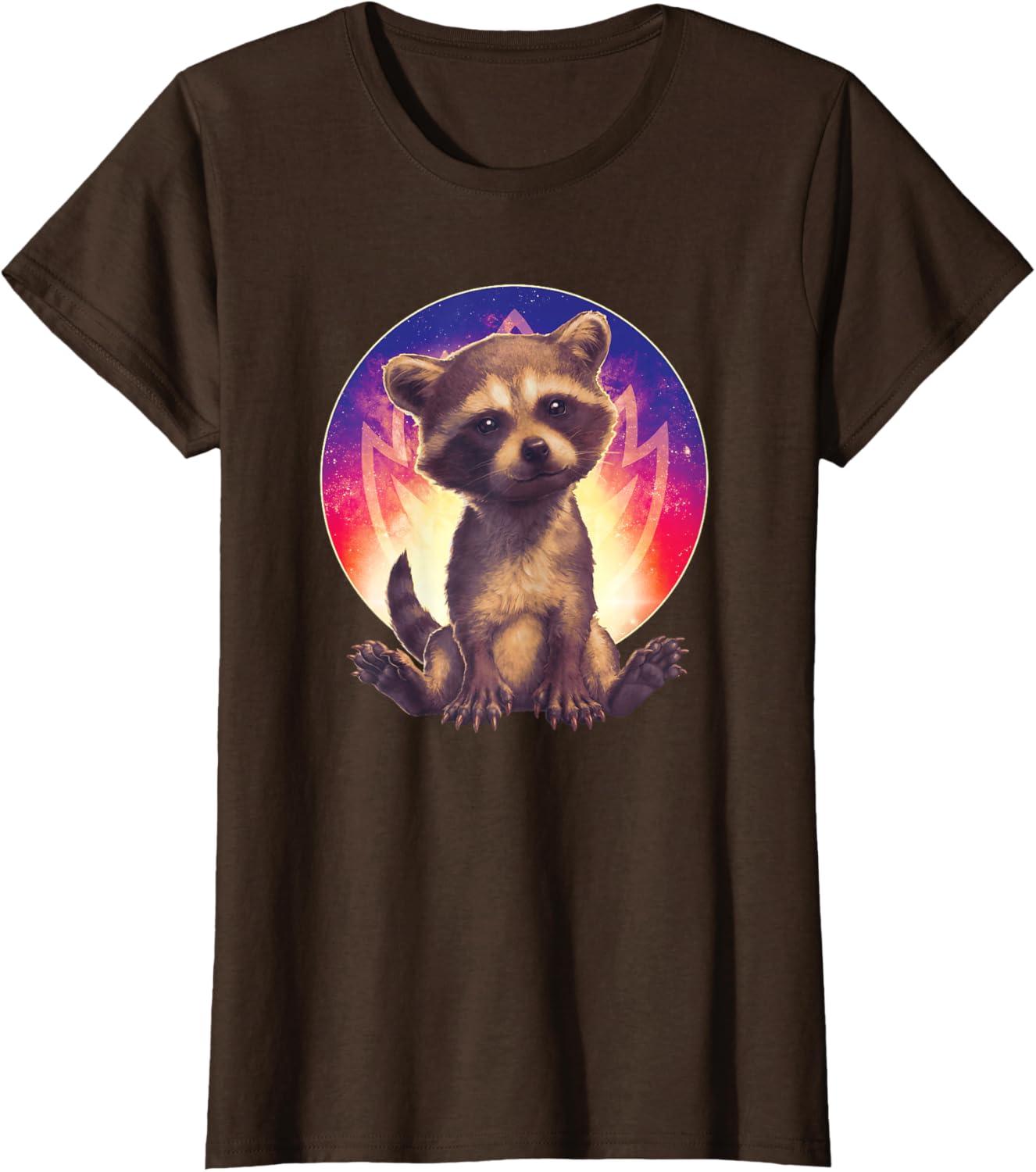 It's Baby Rocket Raccoon from Marvel Studios' blockbuster “Guardians of the Galaxy Volume 3” movie sequel! This official Marvel tee or hoodie features cute, realistic art of Rocket in his childhood days, with the Guardians of the Galaxy flame badge logo inside a starry circle behind him. A great gift for a Rocket Raccoon, Guardians of the Galaxy, or Marvel Cinematic Universe (MCU) fan. Available in youth and adult sizes. Find it in a t-shirt, premium t-shirt, tank top, v-neck, long sleeve tee, hoodie, and sweatshirt.