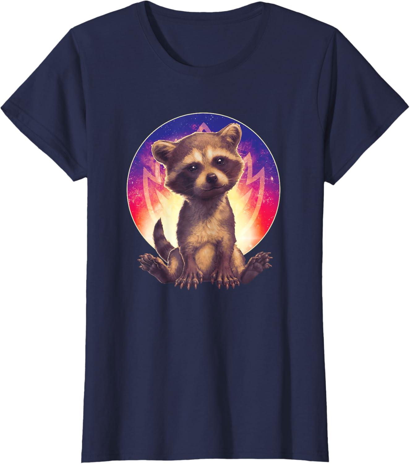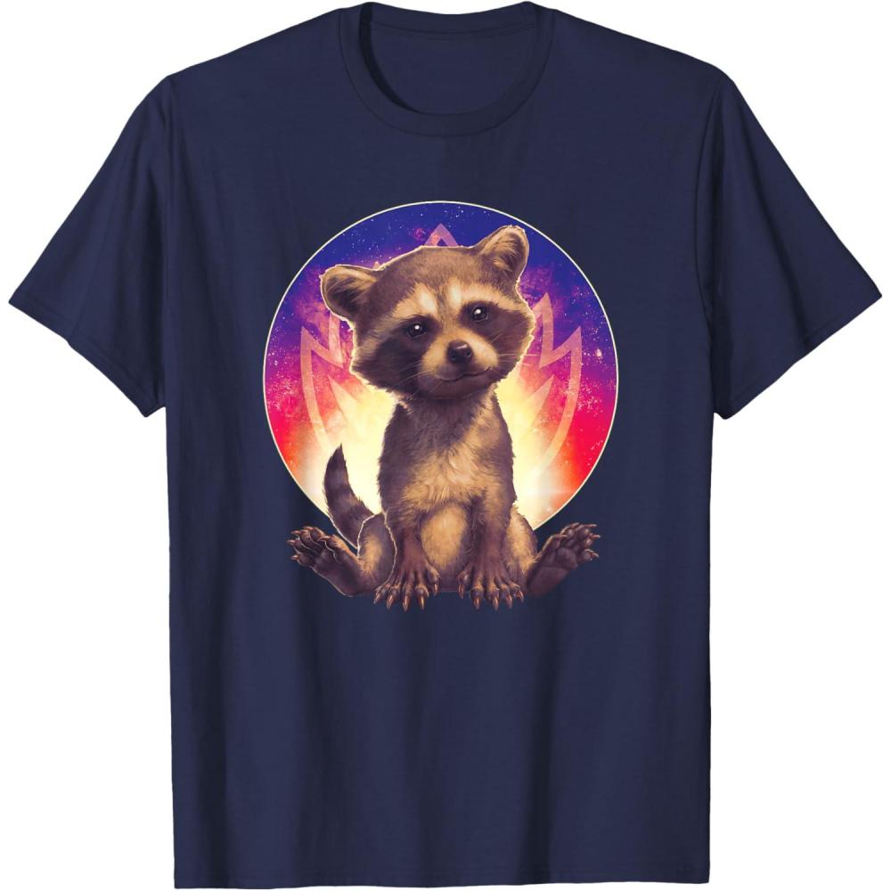 It's Baby Rocket Raccoon from Marvel Studios' blockbuster “Guardians of the Galaxy Volume 3” movie sequel! This official Marvel tee or hoodie features cute, realistic art of Rocket in his childhood days, with the Guardians of the Galaxy flame badge logo inside a starry circle behind him. A great gift for a Rocket Raccoon, Guardians of the Galaxy, or Marvel Cinematic Universe (MCU) fan. Available in youth and adult sizes. Find it in a t-shirt, premium t-shirt, tank top, v-neck, long sleeve tee, hoodie, and sweatshirt.
