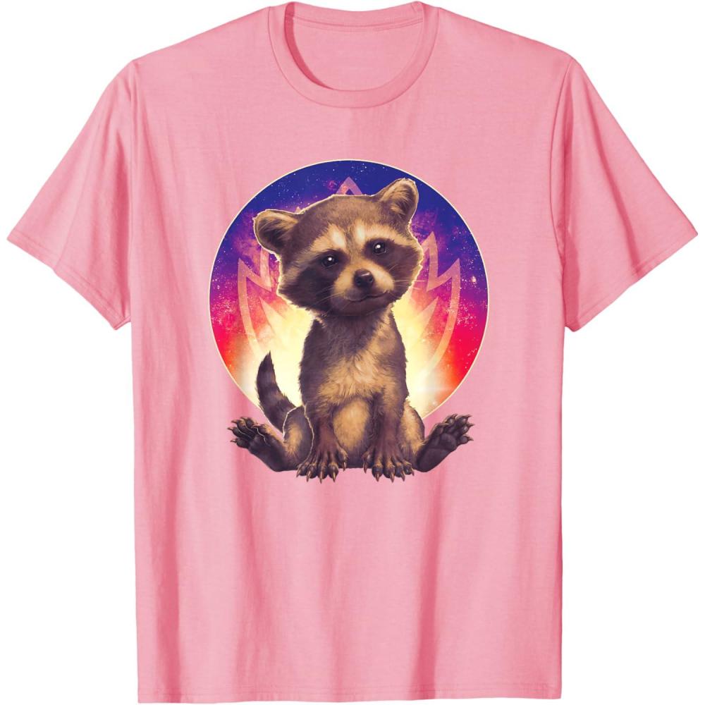 It's Baby Rocket Raccoon from Marvel Studios' blockbuster “Guardians of the Galaxy Volume 3” movie sequel! This official Marvel tee or hoodie features cute, realistic art of Rocket in his childhood days, with the Guardians of the Galaxy flame badge logo inside a starry circle behind him. A great gift for a Rocket Raccoon, Guardians of the Galaxy, or Marvel Cinematic Universe (MCU) fan. Available in youth and adult sizes. Find it in a t-shirt, premium t-shirt, tank top, v-neck, long sleeve tee, hoodie, and sweatshirt.