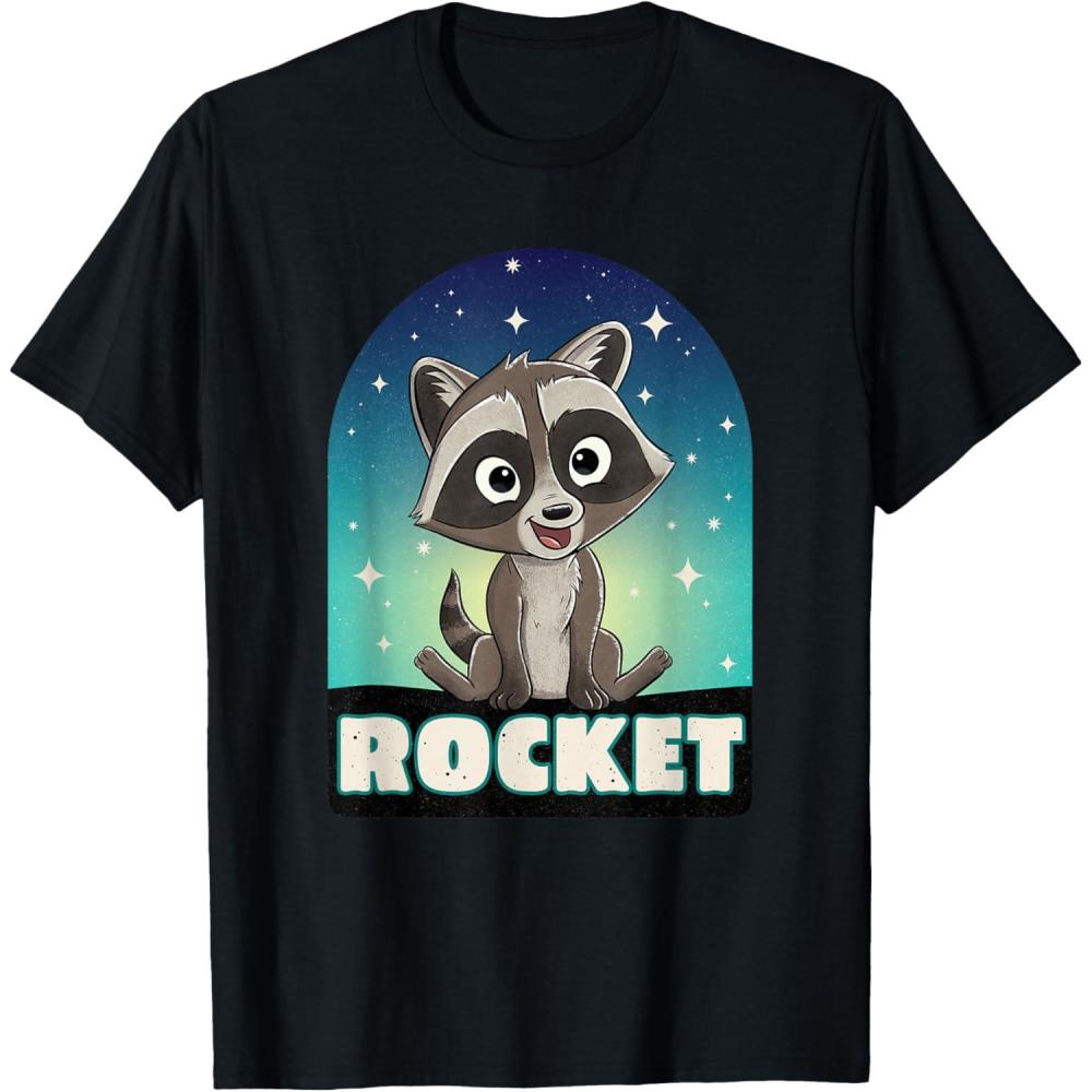 It's Baby Rocket Raccoon from Marvel Studios' blockbuster “Guardians of the Galaxy Volume 3” movie sequel! This official Marvel tee or hoodie features cute, cartoony art of Rocket in his childhood days, with a starry sky background, his name underneath, and a cool paint spatter effect for a vintage effect. A great gift for a Rocket Raccoon, Guardians of the Galaxy, or Marvel Cinematic Universe (MCU) fan. Available in youth and adult sizes. Find it in a t-shirt, premium t-shirt, tank top, v-neck, long sleeve tee, hoodie, and sweatshirt.