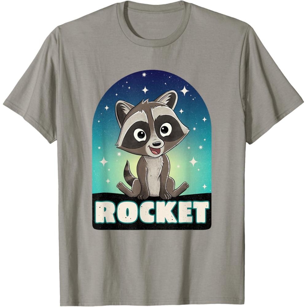 It's Baby Rocket Raccoon from Marvel Studios' blockbuster “Guardians of the Galaxy Volume 3” movie sequel! This official Marvel tee or hoodie features cute, cartoony art of Rocket in his childhood days, with a starry sky background, his name underneath, and a cool paint spatter effect for a vintage effect. A great gift for a Rocket Raccoon, Guardians of the Galaxy, or Marvel Cinematic Universe (MCU) fan. Available in youth and adult sizes. Find it in a t-shirt, premium t-shirt, tank top, v-neck, long sleeve tee, hoodie, and sweatshirt.