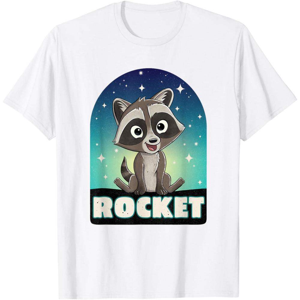 It's Baby Rocket Raccoon from Marvel Studios' blockbuster “Guardians of the Galaxy Volume 3” movie sequel! This official Marvel tee or hoodie features cute, cartoony art of Rocket in his childhood days, with a starry sky background, his name underneath, and a cool paint spatter effect for a vintage effect. A great gift for a Rocket Raccoon, Guardians of the Galaxy, or Marvel Cinematic Universe (MCU) fan. Available in youth and adult sizes. Find it in a t-shirt, premium t-shirt, tank top, v-neck, long sleeve tee, hoodie, and sweatshirt.