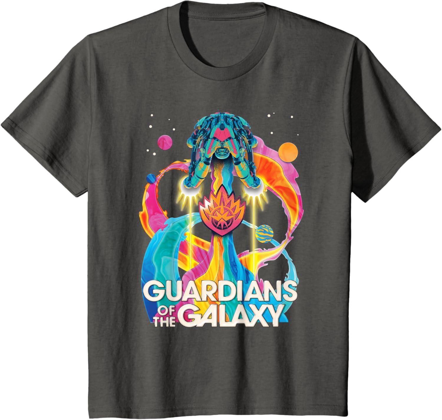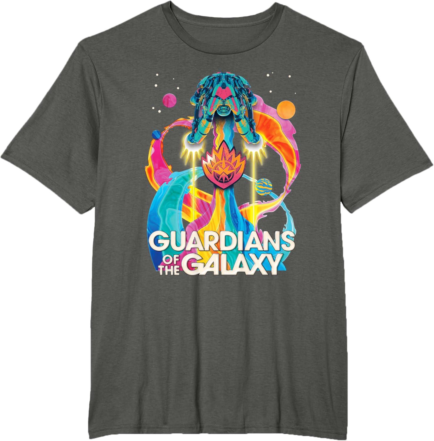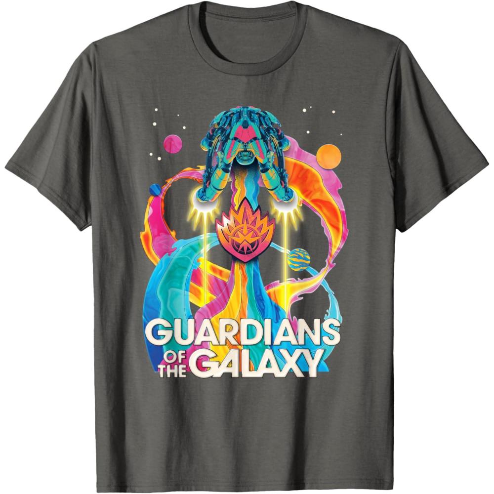 Marvel Guardians of the Galaxy Volume 3 Bowie Space Rainbow T-Shirt(Asphalt Grey)