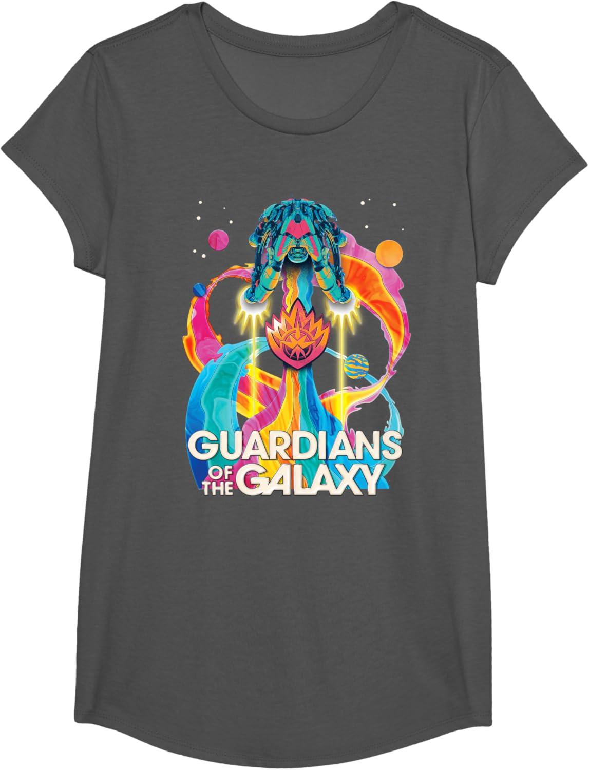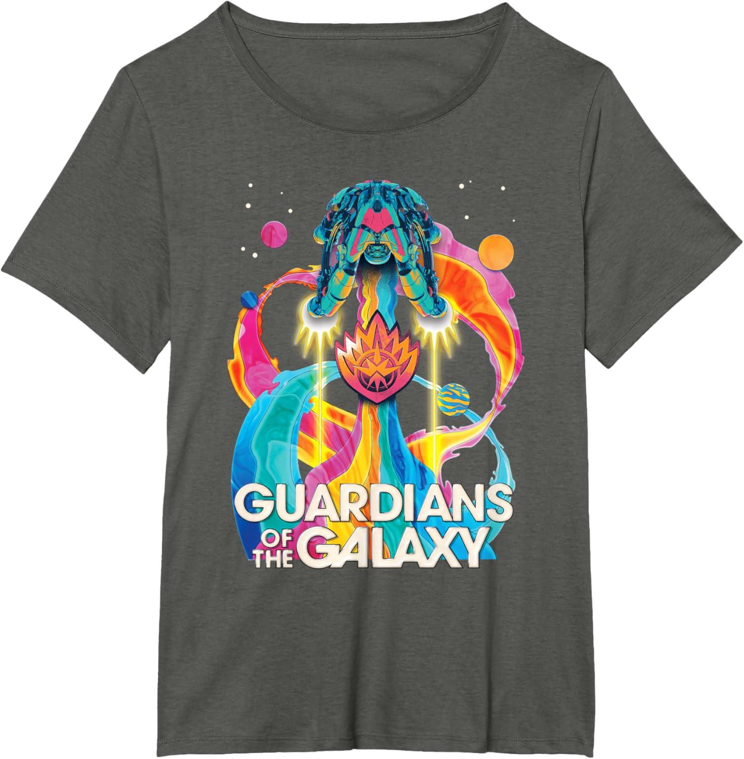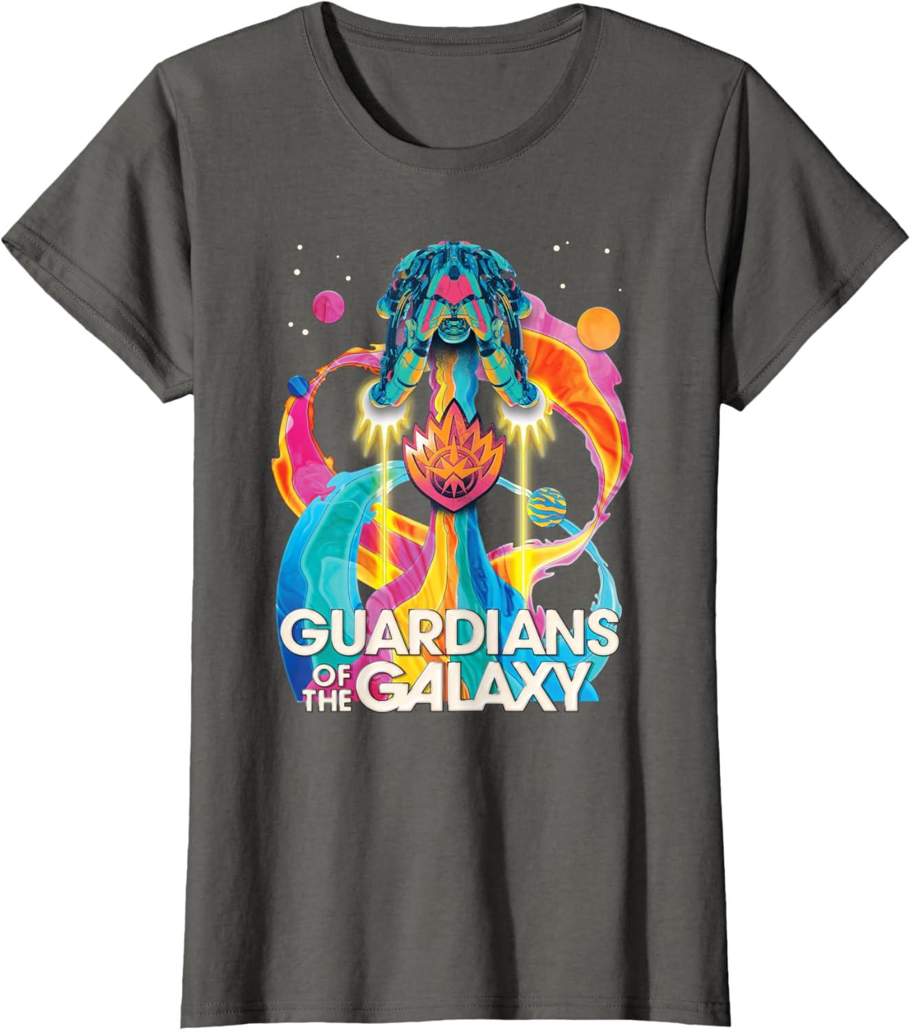 Marvel Guardians of the Galaxy Volume 3 Bowie Space Rainbow T-Shirt(Asphalt Grey)
