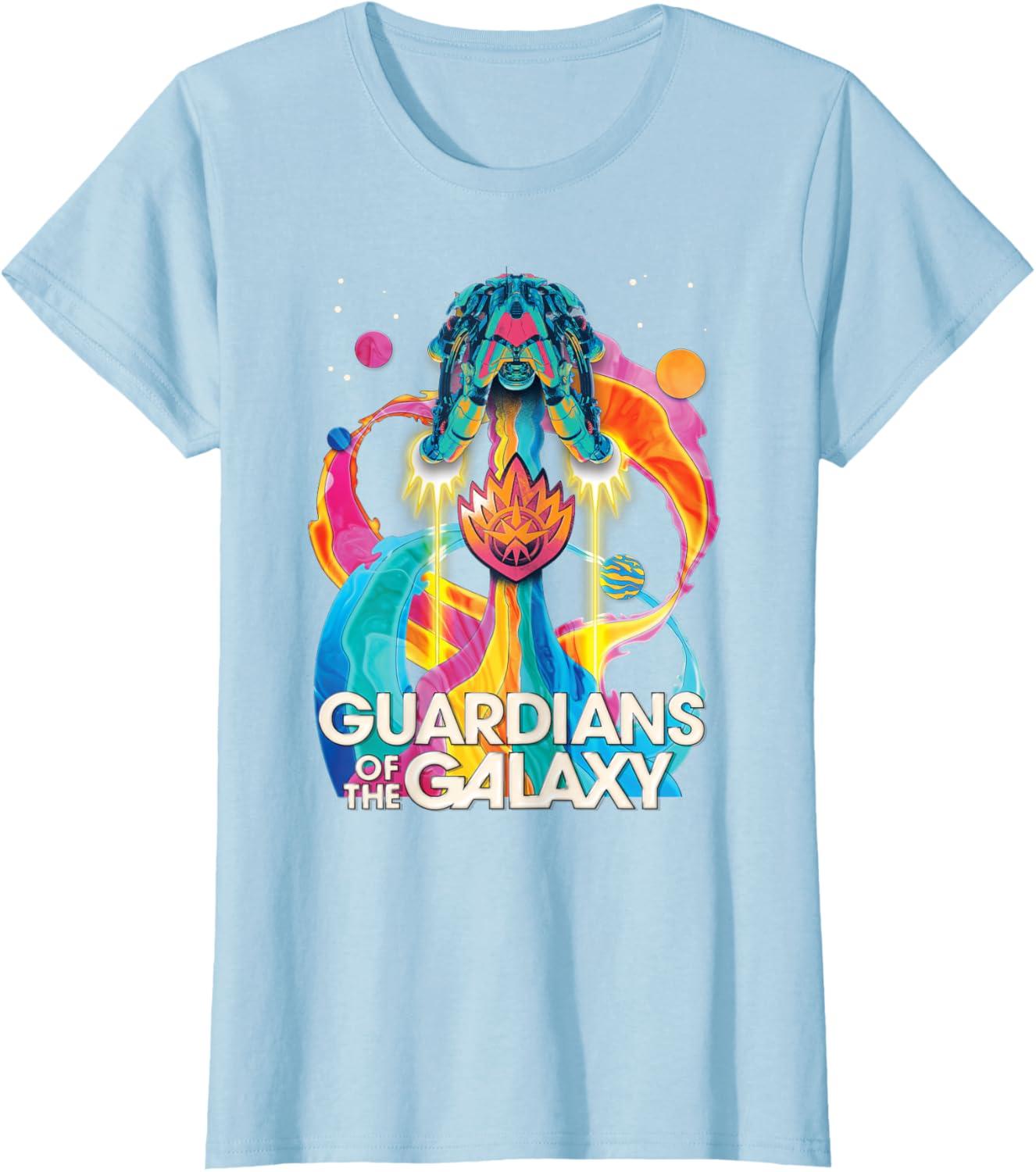 Marvel Guardians of the Galaxy Volume 3 Bowie Space Rainbow T-Shirt(Baby Blue)