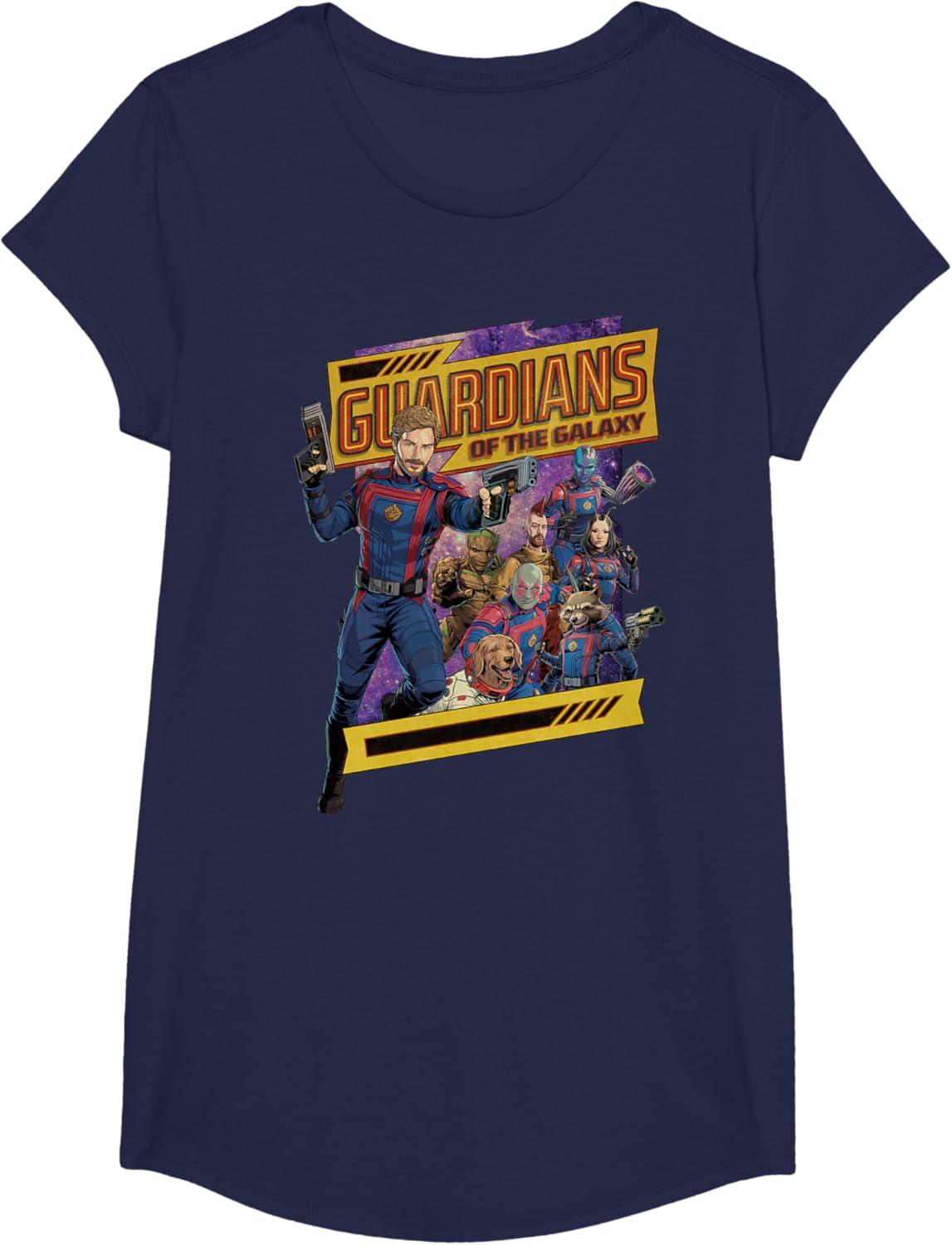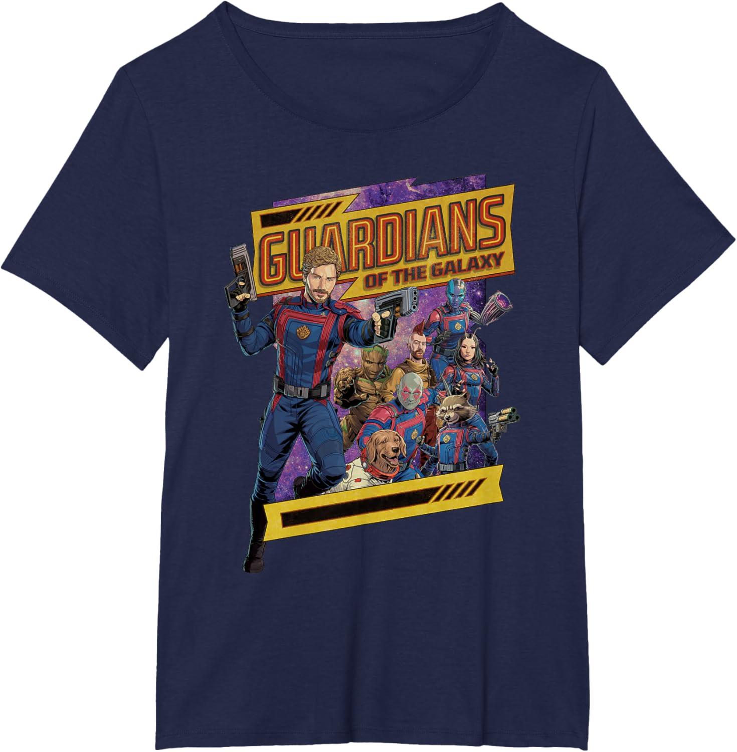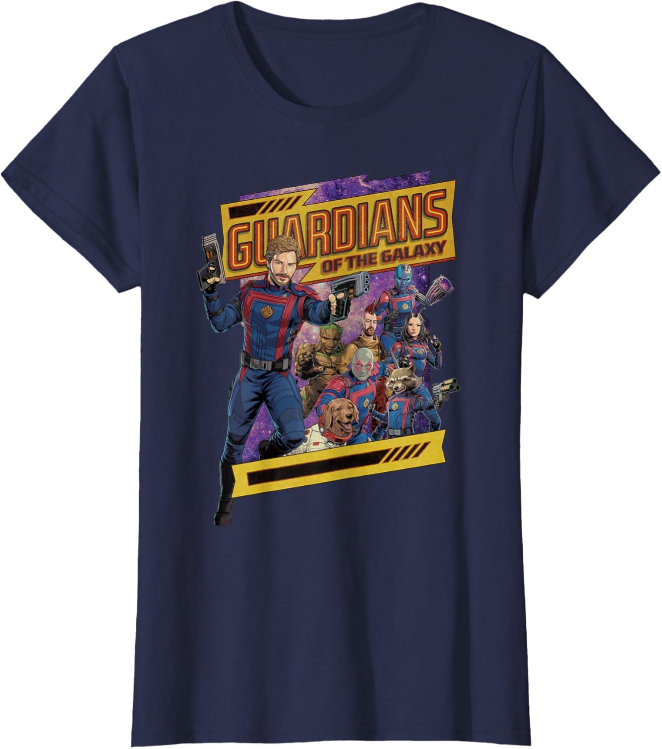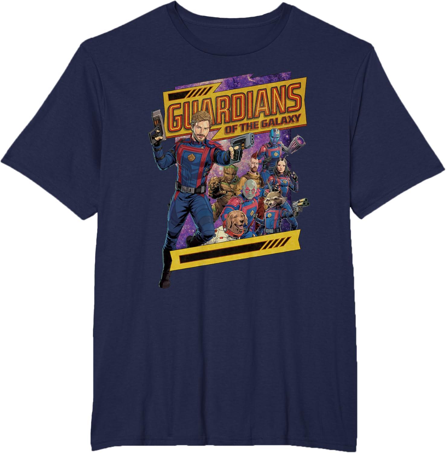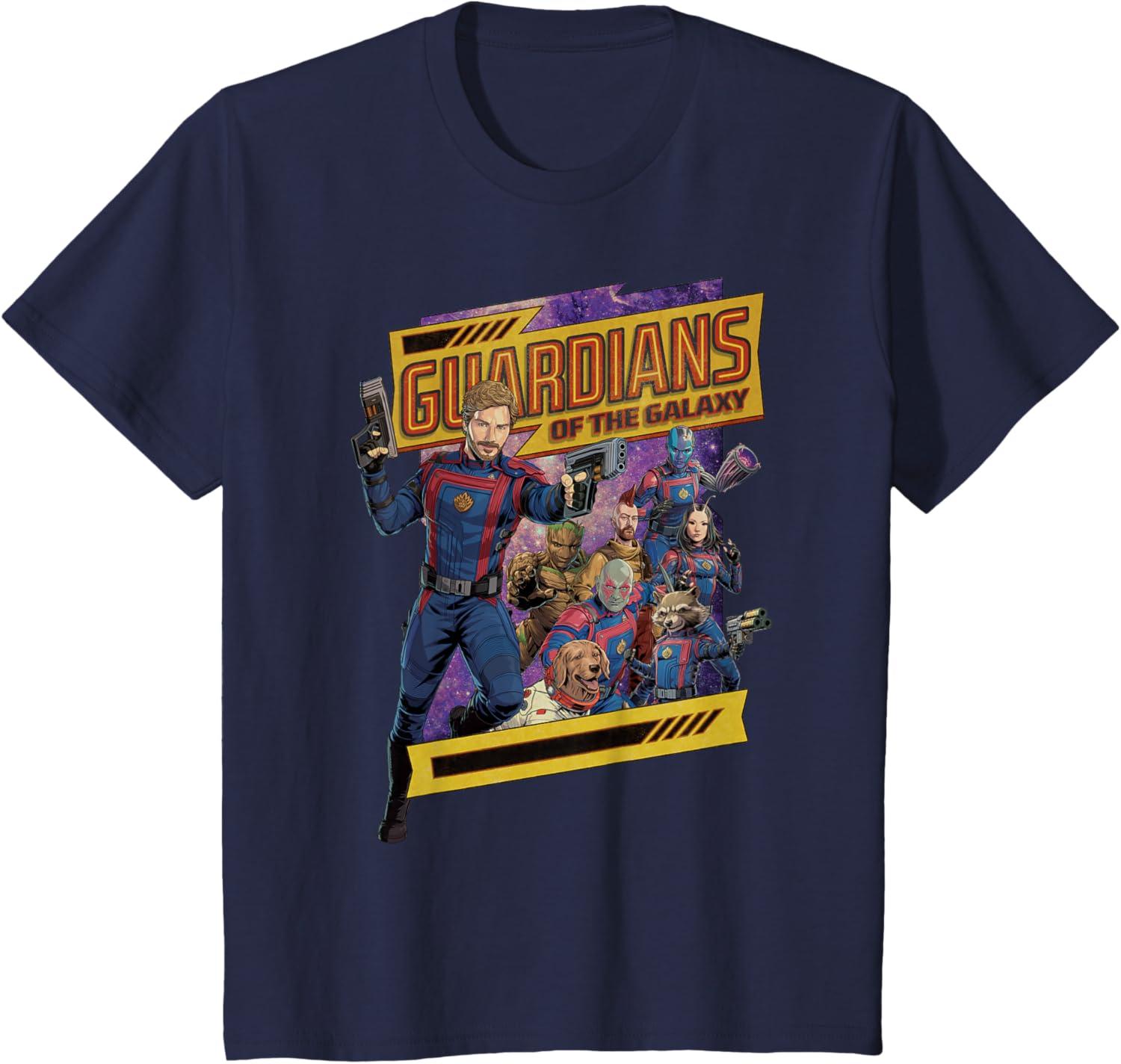Marvel Guardians of the Galaxy Volume 3 Comic Style and Logo T-Shirt(Navy Blue)