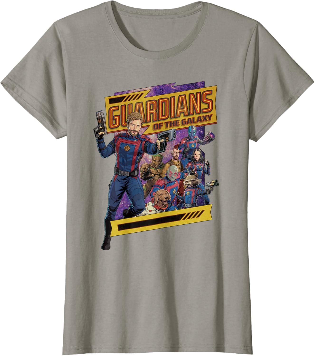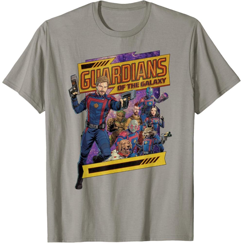 Marvel Guardians of the Galaxy Volume 3 Comic Style and Logo T-Shirt(Slate Grey)