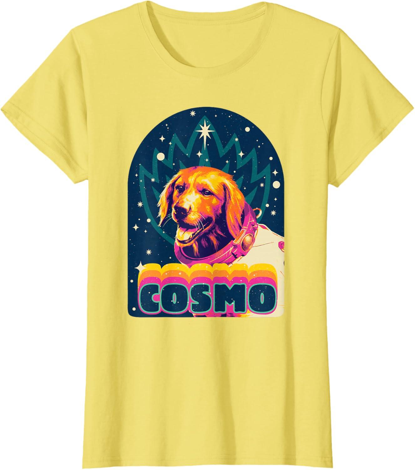 She’s a barking, talking blast from the past! Straight from the Collector’s collection of creatures and oddities from all across the universe, Cosmo the Space Dog joins the team in Marvel Studios’ “Guardians of the Galaxy Volume 3” movie sequel on this official tee or hoodie, featuring Cosmo with her rainbow-hued name, a starry cosmos, and the Guardians’ iconic flame symbol badge in an awesomely retro design hearkening back to classic rock music album covers. A great gift for a dog lover or a Guardians of the Galaxy and Marvel Cinematic Universe (MCU) fan! Available in youth and adult sizes. Find it in a t-shirt, premium t-shirt, tank top, v-neck, long sleeve tee, hoodie, and sweatshirt.