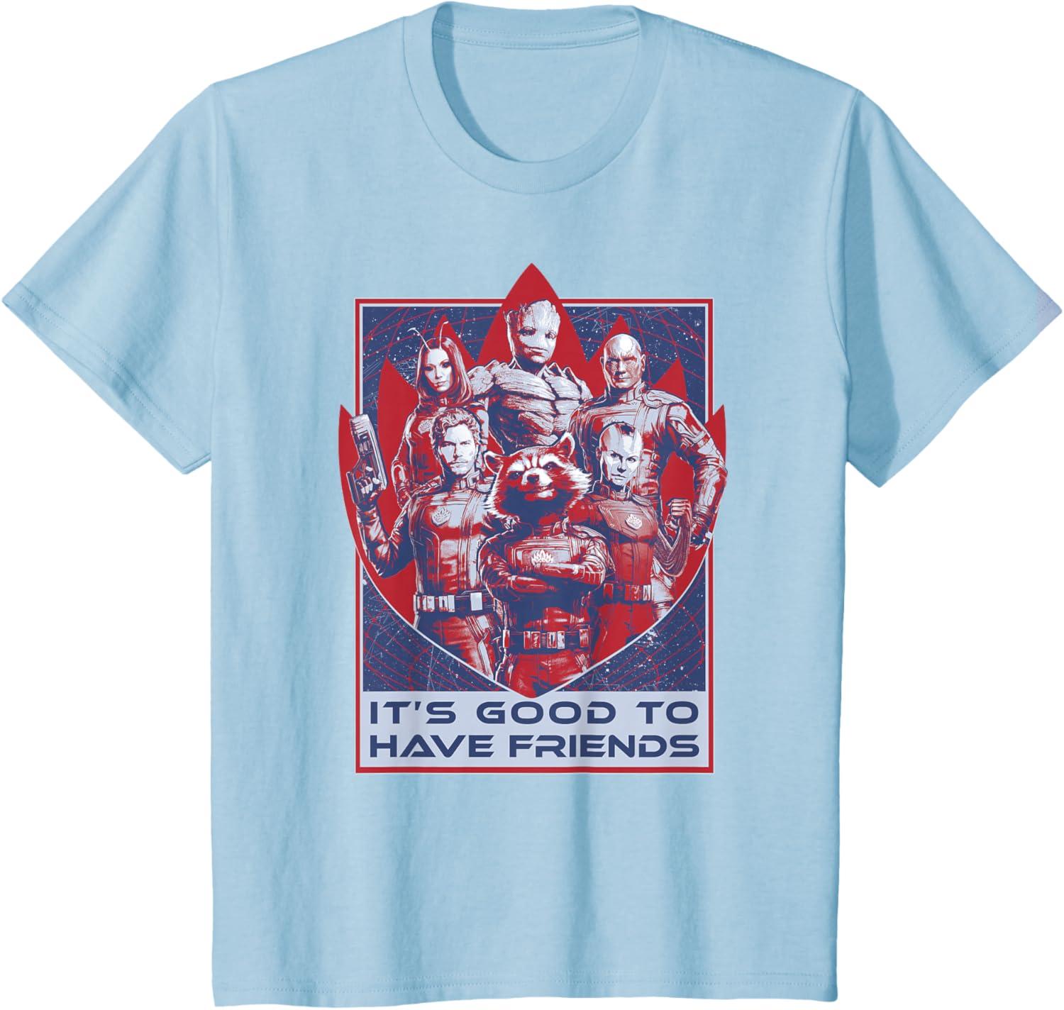 Everybody should have friends like these! From Marvel Studios’ “Guardians of the Galaxy Volume 3” film sequel, this official tee or hoodie features the team of Peter “Star-Lord” Quill, Rocket Raccoon, Groot, Drax, Mantis, and Nebula in their new movie uniforms on the Guardians’ iconic flame symbol badge, with “It’s Good to Have Friends” written underneath. A great gift for a Guardians of the Galaxy or Marvel Cinematic Universe (MCU) fan! Available in youth and adult sizes. Find it in a t-shirt, premium t-shirt, tank top, v-neck, long sleeve tee, hoodie, and sweatshirt.