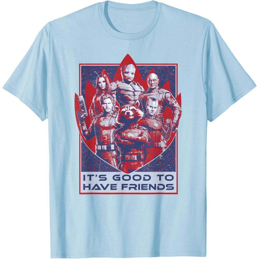 Marvel Guardians of the Galaxy Volume 3 Good to Have Friends T-Shirt(Baby Blue)