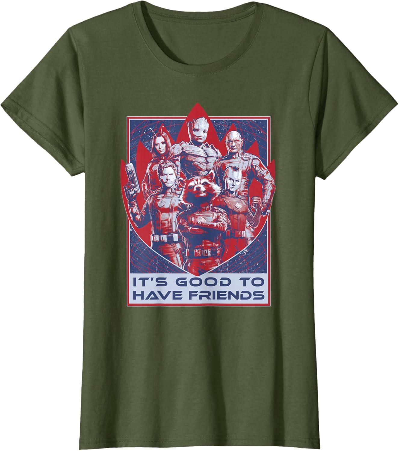 Marvel Guardians of the Galaxy Volume 3 Good to Have Friends T-Shirt(Olive Green)