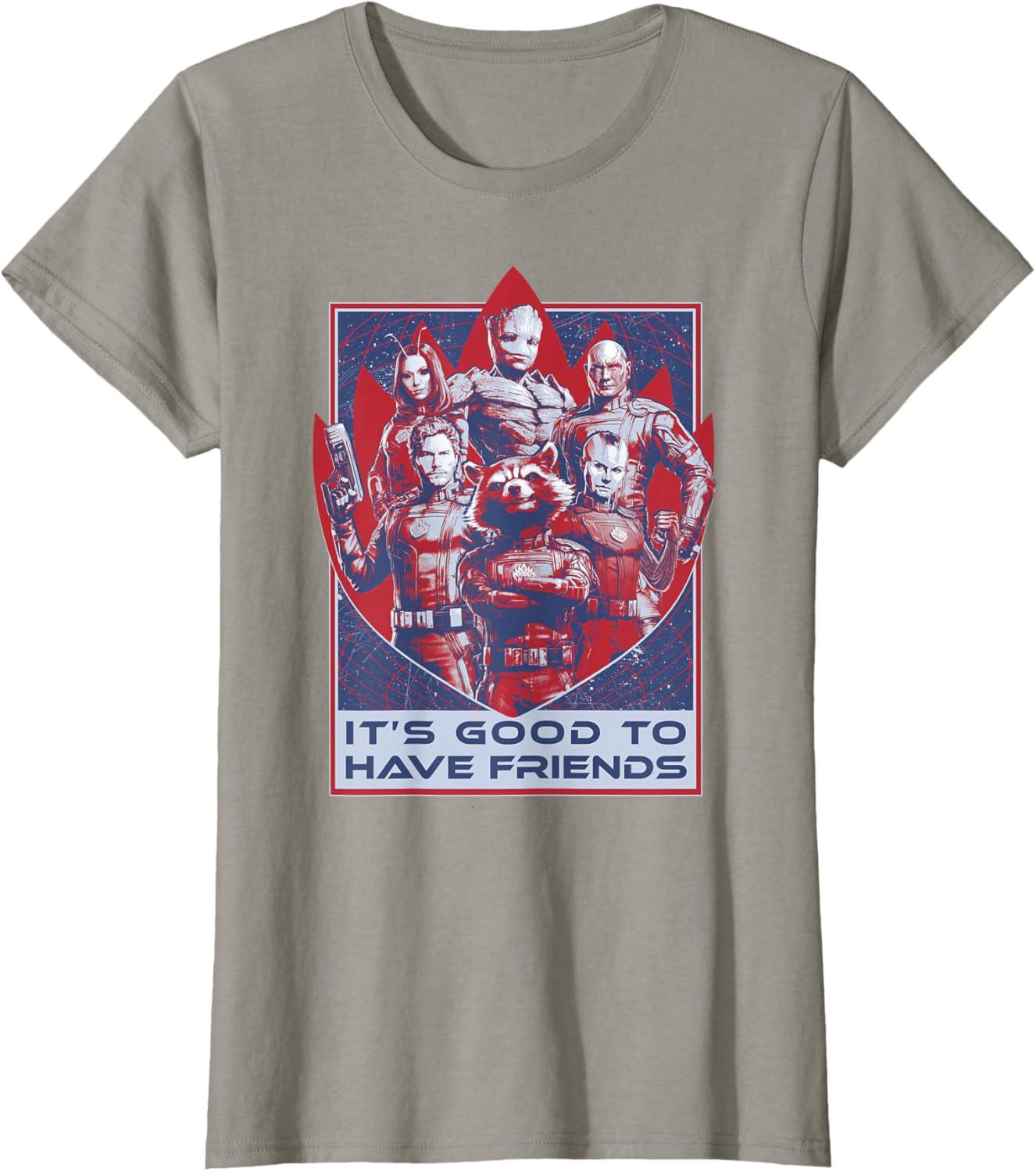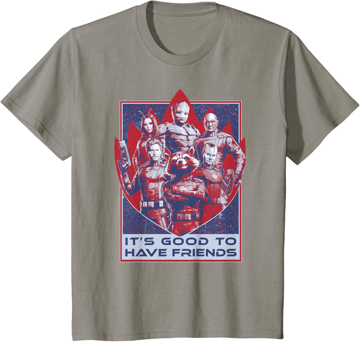 Everybody should have friends like these! From Marvel Studios’ “Guardians of the Galaxy Volume 3” film sequel, this official tee or hoodie features the team of Peter “Star-Lord” Quill, Rocket Raccoon, Groot, Drax, Mantis, and Nebula in their new movie uniforms on the Guardians’ iconic flame symbol badge, with “It’s Good to Have Friends” written underneath. A great gift for a Guardians of the Galaxy or Marvel Cinematic Universe (MCU) fan! Available in youth and adult sizes. Find it in a t-shirt, premium t-shirt, tank top, v-neck, long sleeve tee, hoodie, and sweatshirt.