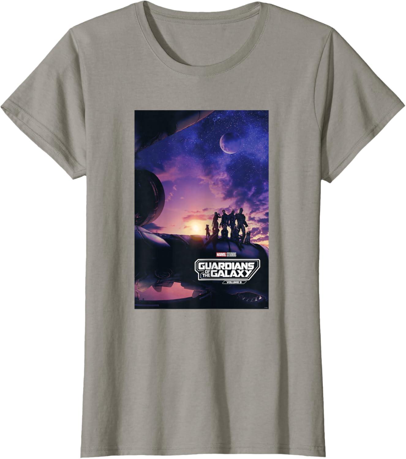 Marvel Guardians of the Galaxy Volume 3 Movie Poster Logo T-Shirt(Asphalt Grey)