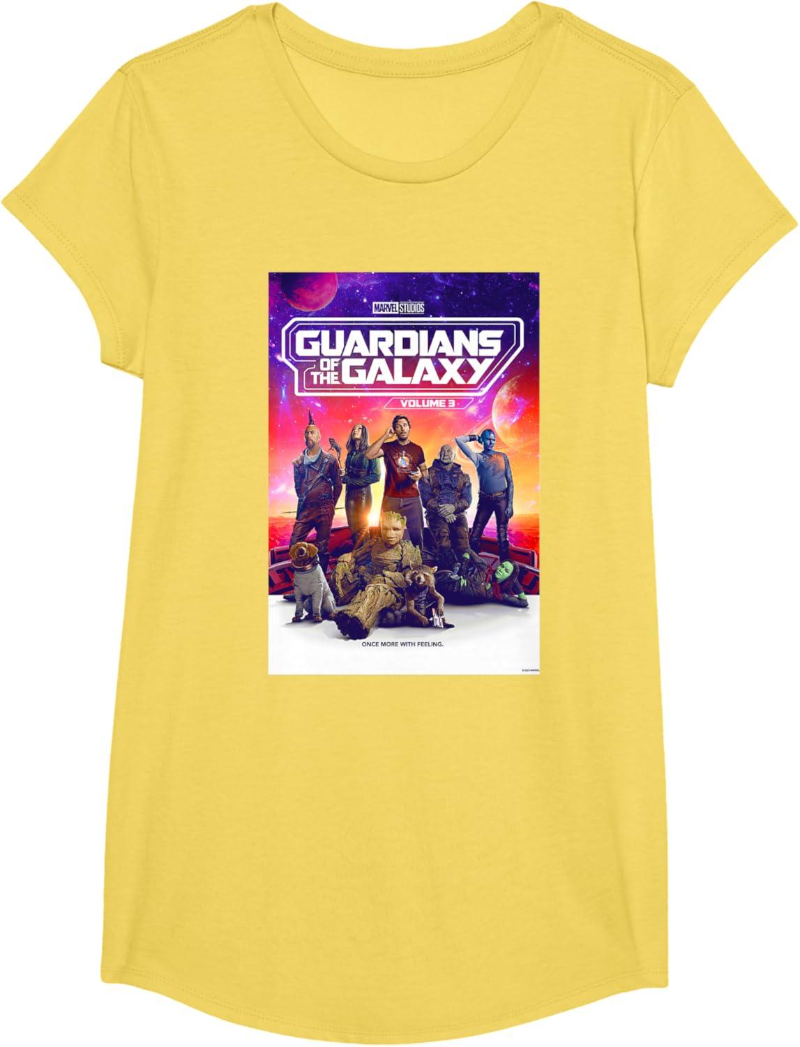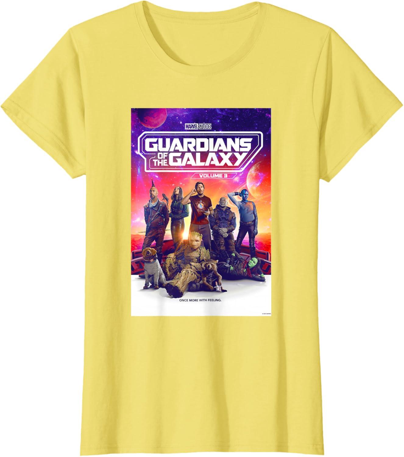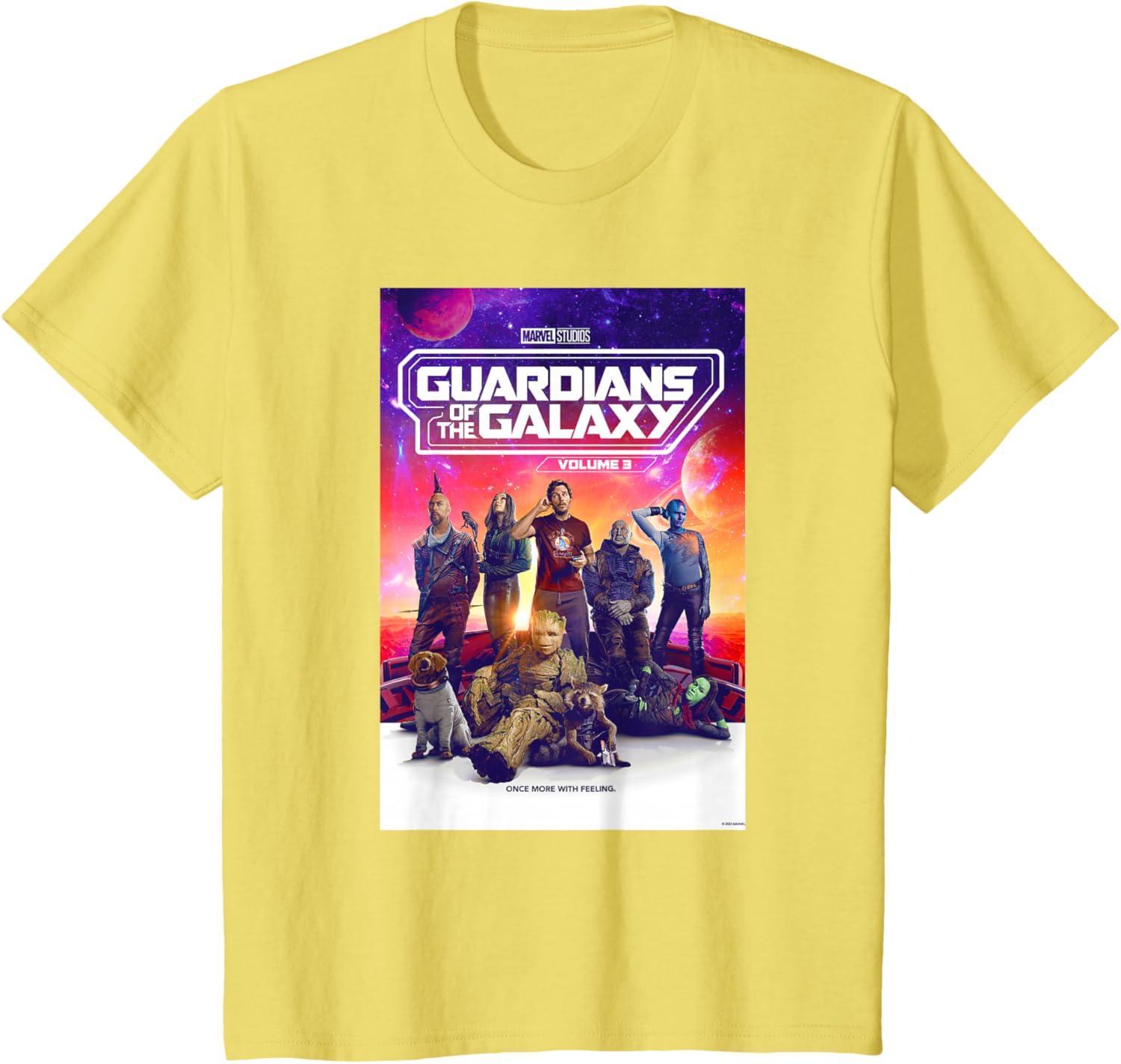 The gang’s all here for one more cosmic adventure! This official tee or hoodie features the theatrical movie poster art from Marvel Studios’ “Guardians of the Galaxy Volume 3” sequel film. You’ll find the whole universe-saving Guardians team of Peter “Star-Lord” Quill, Gamora, Rocket Raccoon, Groot, Drax, Mantis, Nebula, Kraglin, and Cosmo the Space Dog, together with the movie title logo and the tagline “Once More with Feeling.” A great gift for a Guardians of the Galaxy or Marvel Cinematic Universe (MCU) fan! Available in youth and adult sizes. Find it in a t-shirt, premium t-shirt, tank top, v-neck, long sleeve tee, hoodie, and sweatshirt.