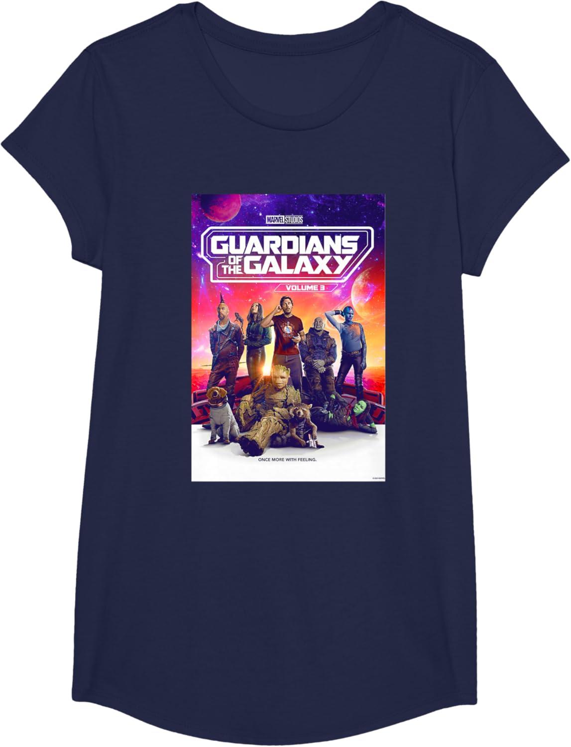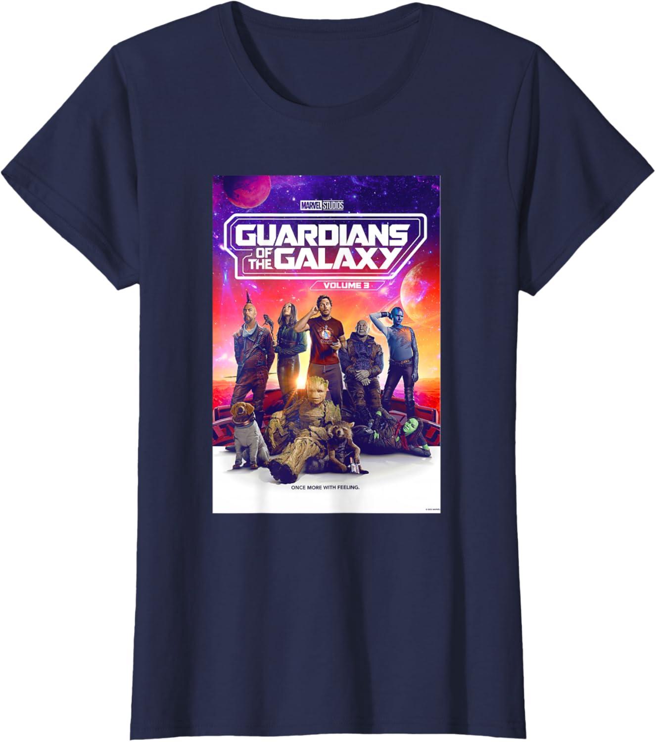 The gang’s all here for one more cosmic adventure! This official tee or hoodie features the theatrical movie poster art from Marvel Studios’ “Guardians of the Galaxy Volume 3” sequel film. You’ll find the whole universe-saving Guardians team of Peter “Star-Lord” Quill, Gamora, Rocket Raccoon, Groot, Drax, Mantis, Nebula, Kraglin, and Cosmo the Space Dog, together with the movie title logo and the tagline “Once More with Feeling.” A great gift for a Guardians of the Galaxy or Marvel Cinematic Universe (MCU) fan! Available in youth and adult sizes. Find it in a t-shirt, premium t-shirt, tank top, v-neck, long sleeve tee, hoodie, and sweatshirt.