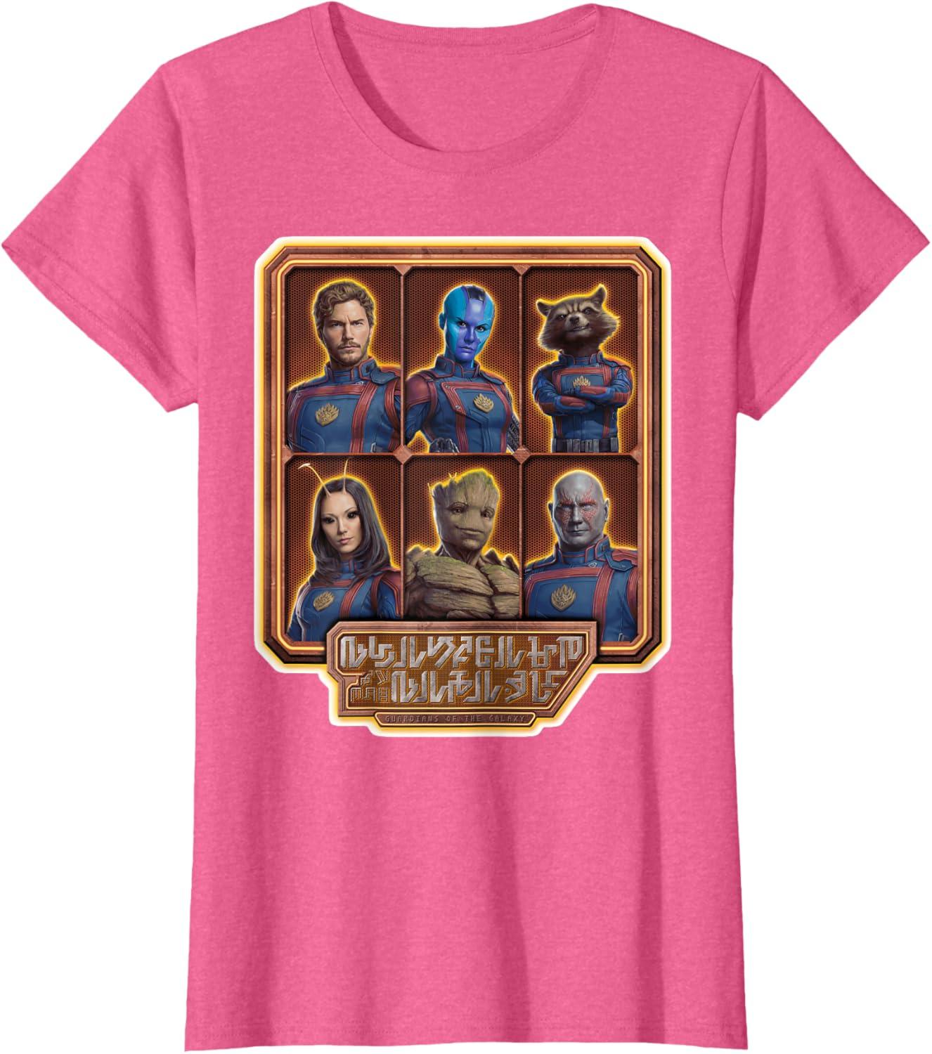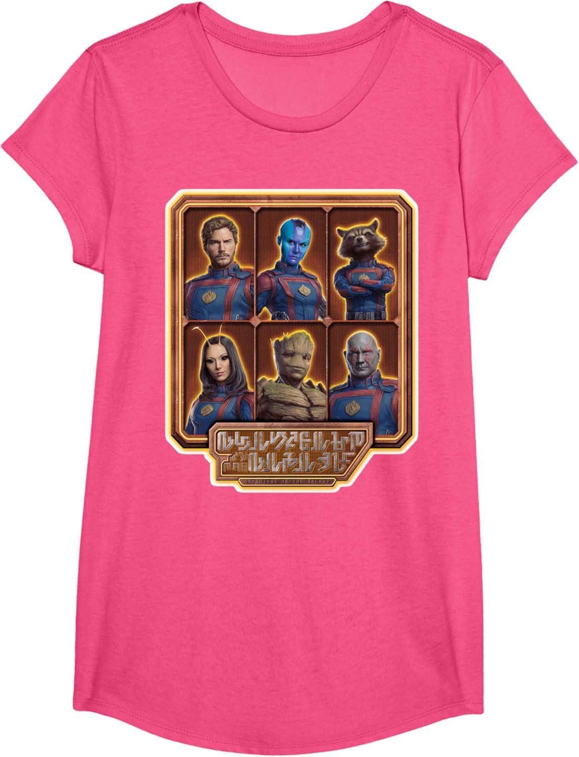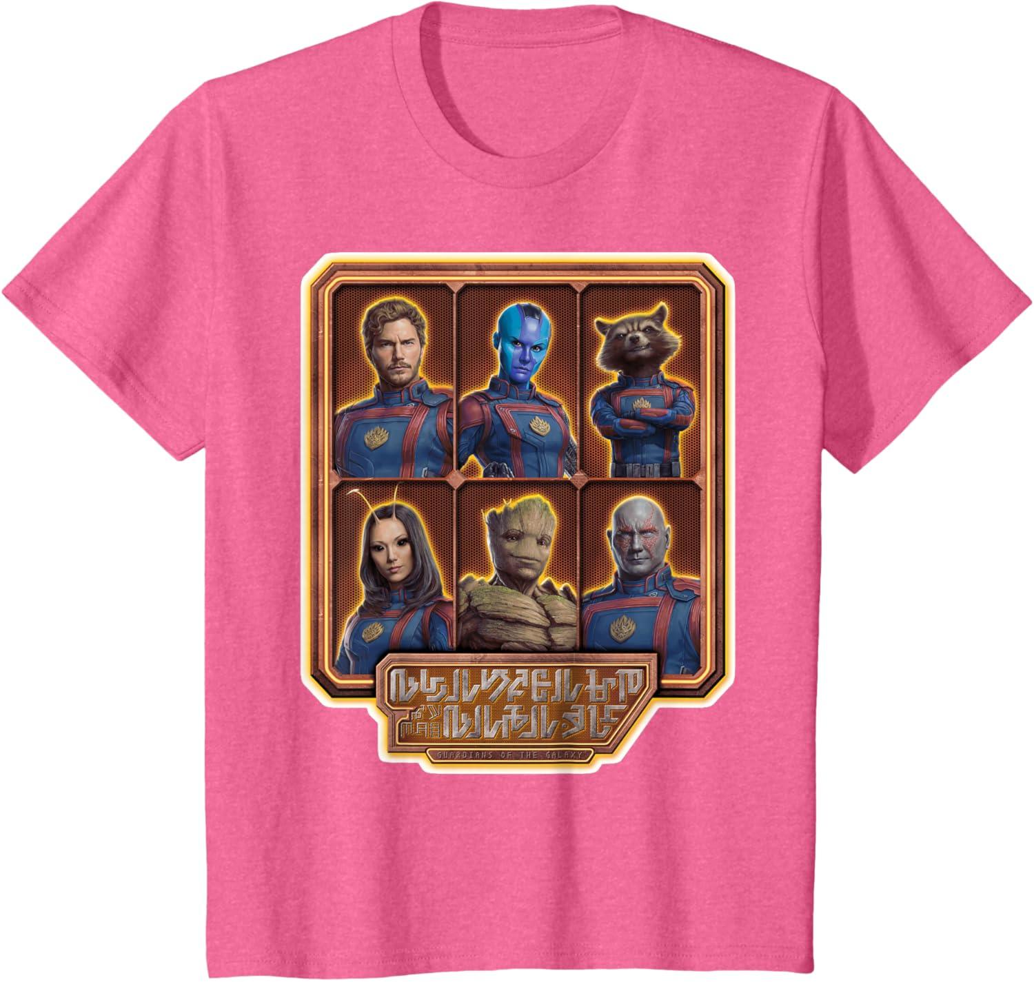 The Guardians are back in Marvel Studios’ “Guardians of the Galaxy Volume 3” film sequel! This official tee or hoodie features team members Peter “Star-Lord” Quill, Nebula, Rocket Raccoon, Mantis, Groot, and Drax in their new uniforms with the Guardians of the Galaxy movie logo written in an alien language and translated into “Guardians of the Galaxy” underneath. A great gift for a Guardians of the Galaxy or Marvel Cinematic Universe (MCU) fan! Available in youth and adult sizes. Find it in a t-shirt, premium t-shirt, tank top, v-neck, long sleeve tee, hoodie, and sweatshirt.