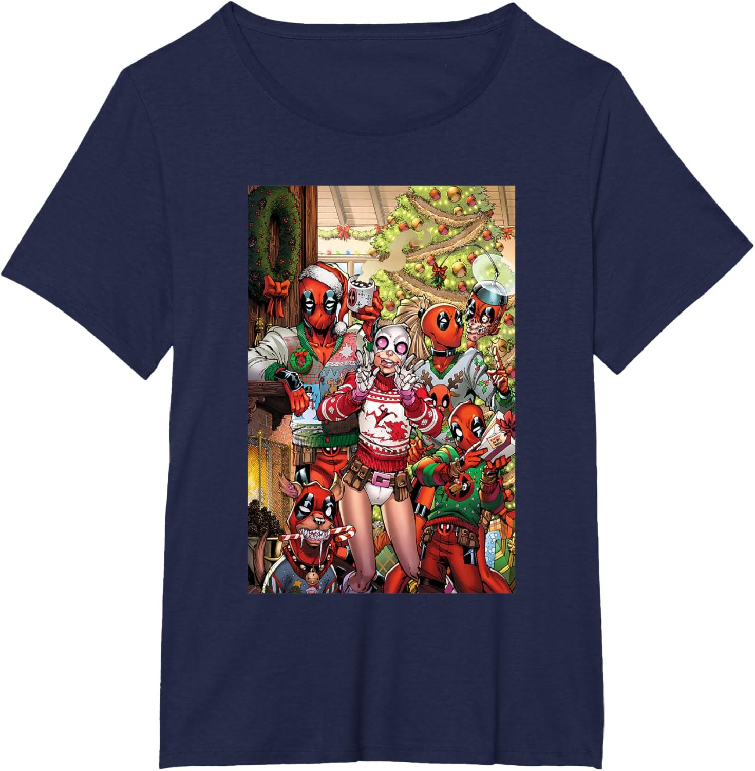 Marvel Gwenpool & Deadpool Family Christmas Holiday T-Shirt(Navy Blue)