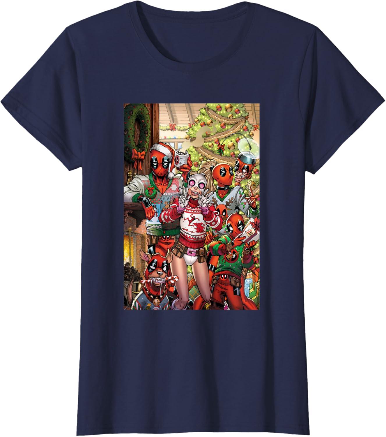 imageMarvel Gwenpool ampamp Deadpool Family Christmas Holiday TShirtNavy Blue
