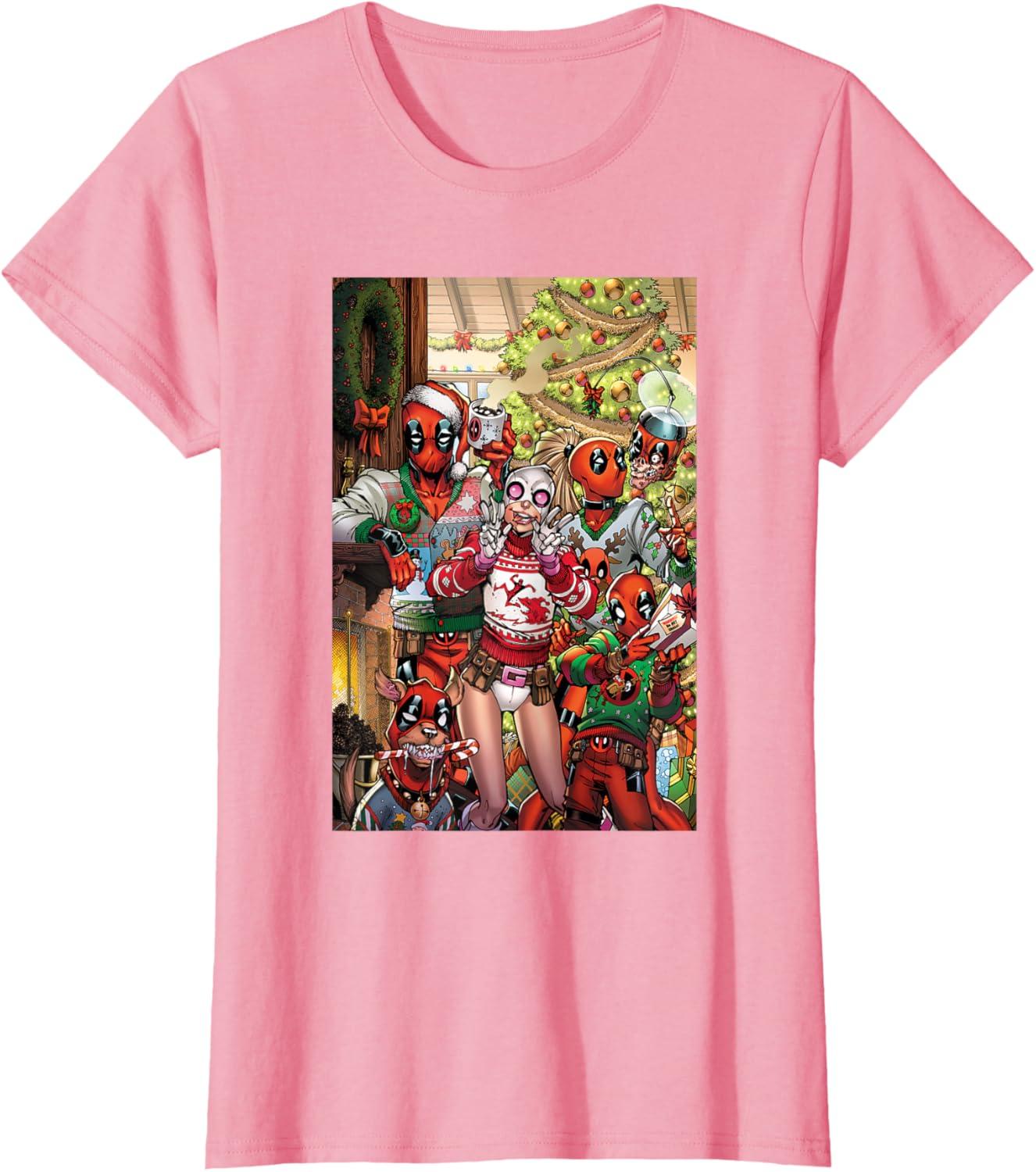 An Amazon exclusive! Join Gwenpool and the whole Deadpool Family for a festive holiday season on this official Marvel tee or hoodie, featuring the dimension-displaced Gwendolyn Poole teamed up with merc-with-a-mouth Deadpool, Lady Deadpool, Kidpool, Dogpool, and zombie Headpool in their most colorful Christmas sweaters for a family portrait of yuletide hijinks and fun. A great Christmas gift for a Deadpool, Gwenpool, or Marvel Super Heroes fan! Get multiples of this full-color graphic shirt design to coordinate and match up with friends and family for even more hero-sized fun. Find it in a t-shirt, premium t-shirt, tank top, v-neck, long sleeve tee, hoodie, and sweatshirt.