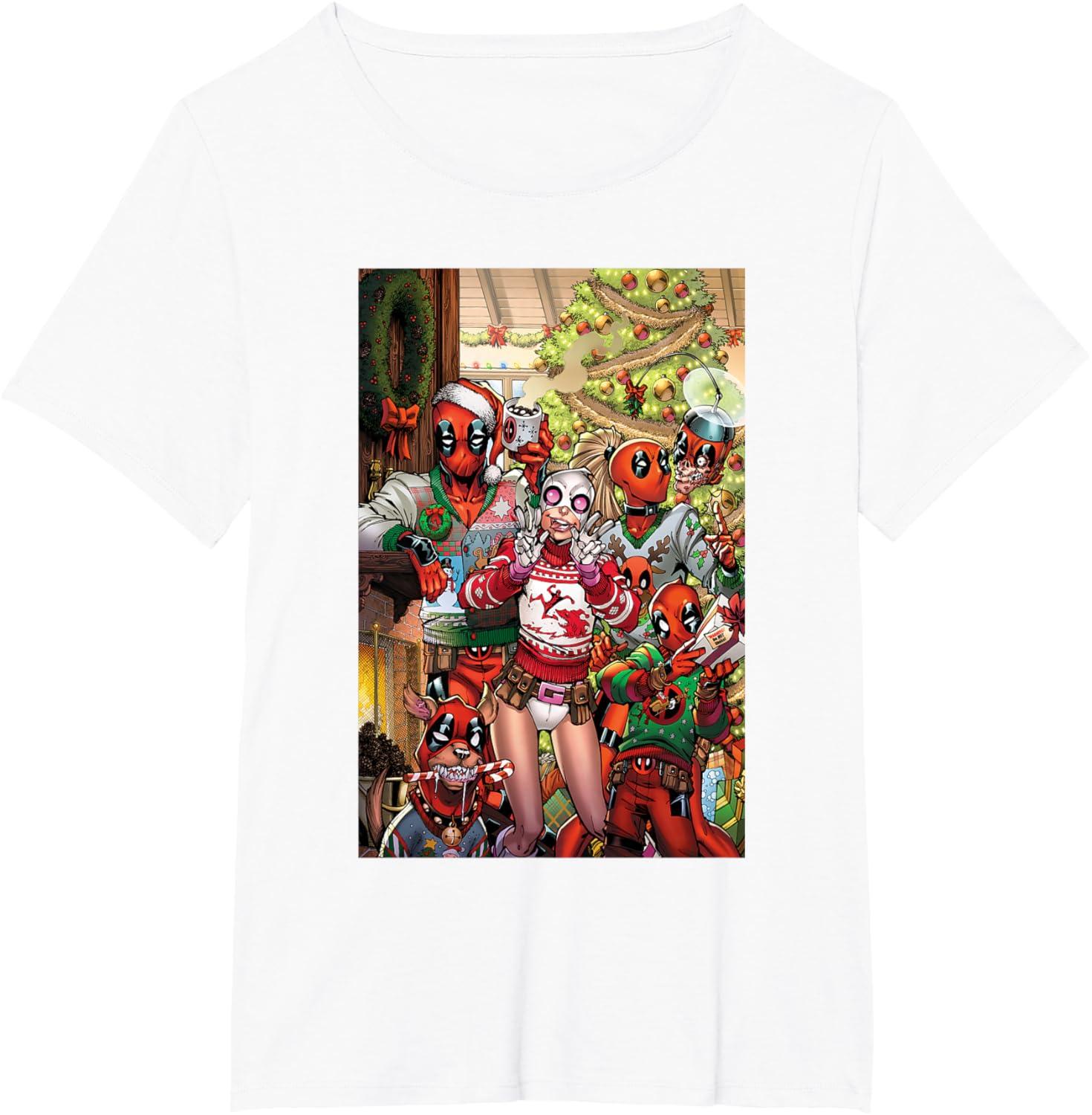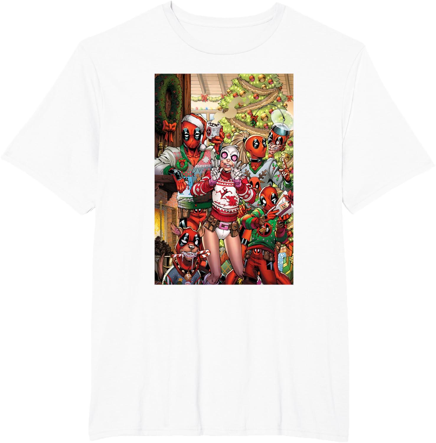 An Amazon exclusive! Join Gwenpool and the whole Deadpool Family for a festive holiday season on this official Marvel tee or hoodie, featuring the dimension-displaced Gwendolyn Poole teamed up with merc-with-a-mouth Deadpool, Lady Deadpool, Kidpool, Dogpool, and zombie Headpool in their most colorful Christmas sweaters for a family portrait of yuletide hijinks and fun. A great Christmas gift for a Deadpool, Gwenpool, or Marvel Super Heroes fan! Get multiples of this full-color graphic shirt design to coordinate and match up with friends and family for even more hero-sized fun. Find it in a t-shirt, premium t-shirt, tank top, v-neck, long sleeve tee, hoodie, and sweatshirt.