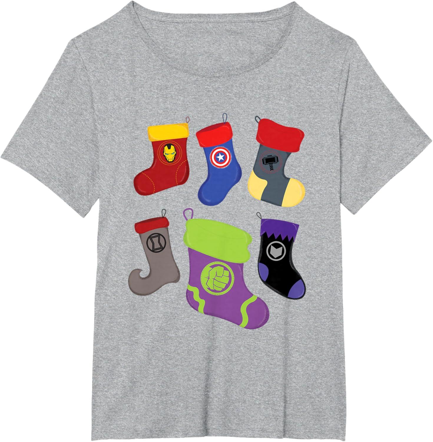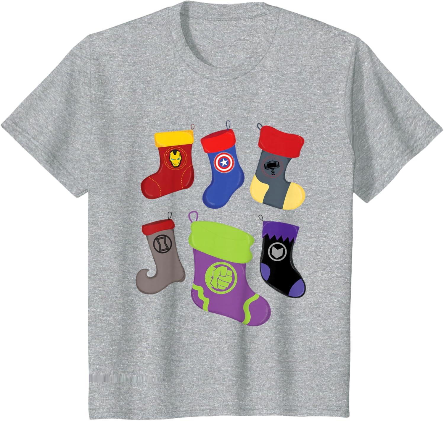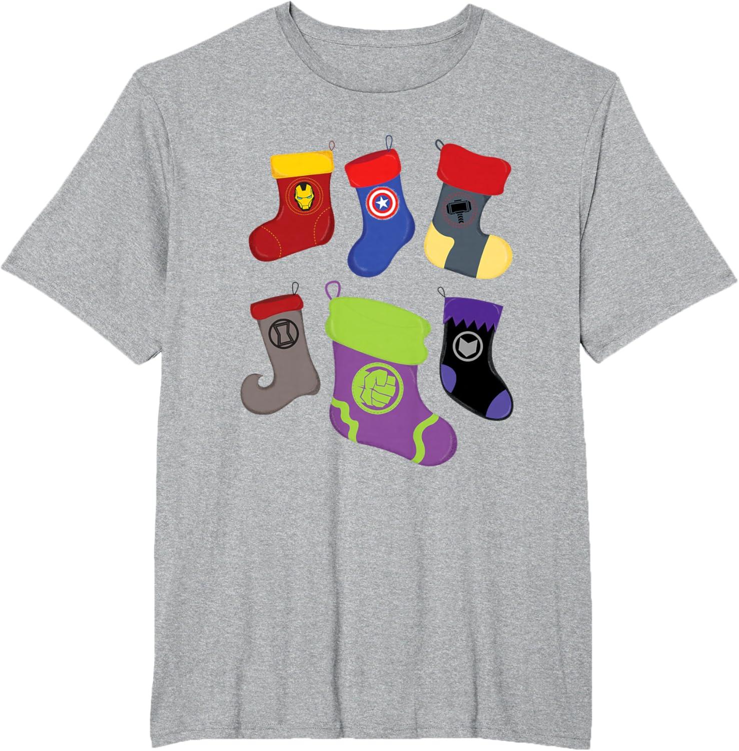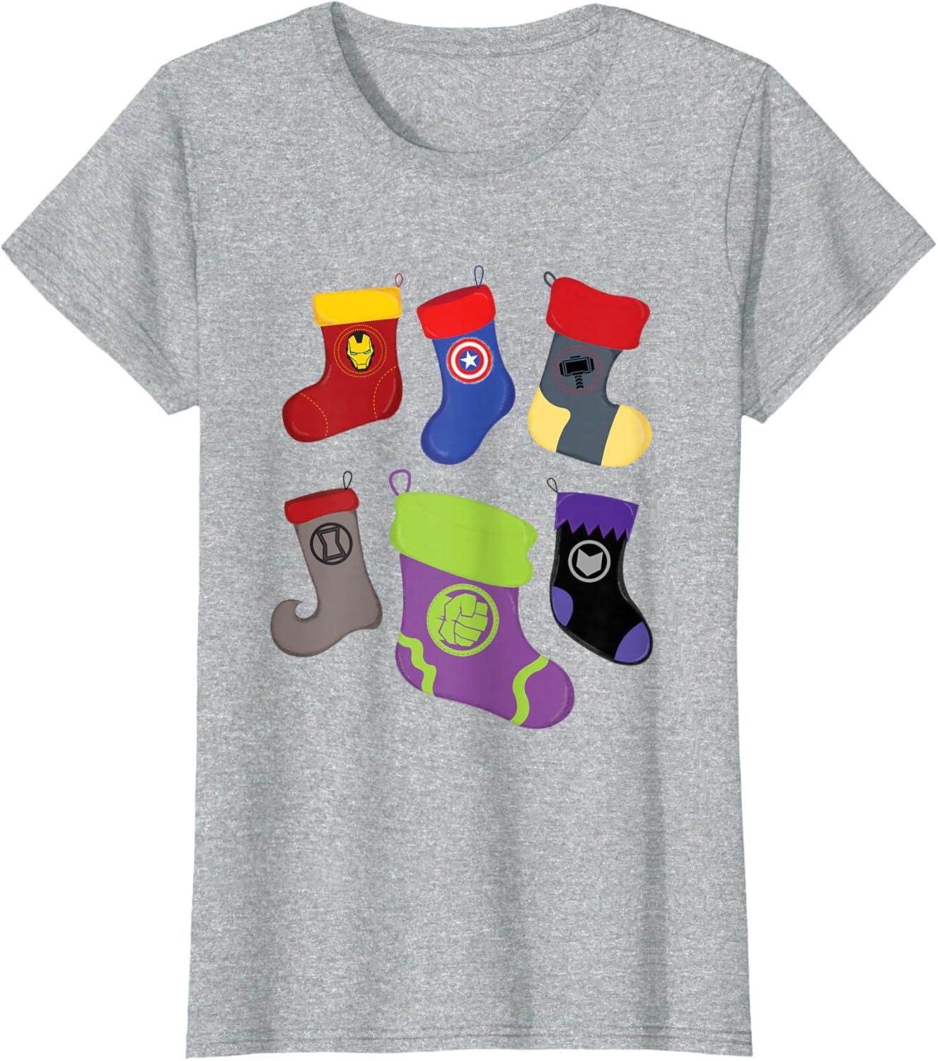 Marvel Holiday Avengers Team Festive Christmas Stockings T-Shirt(Heather Grey)