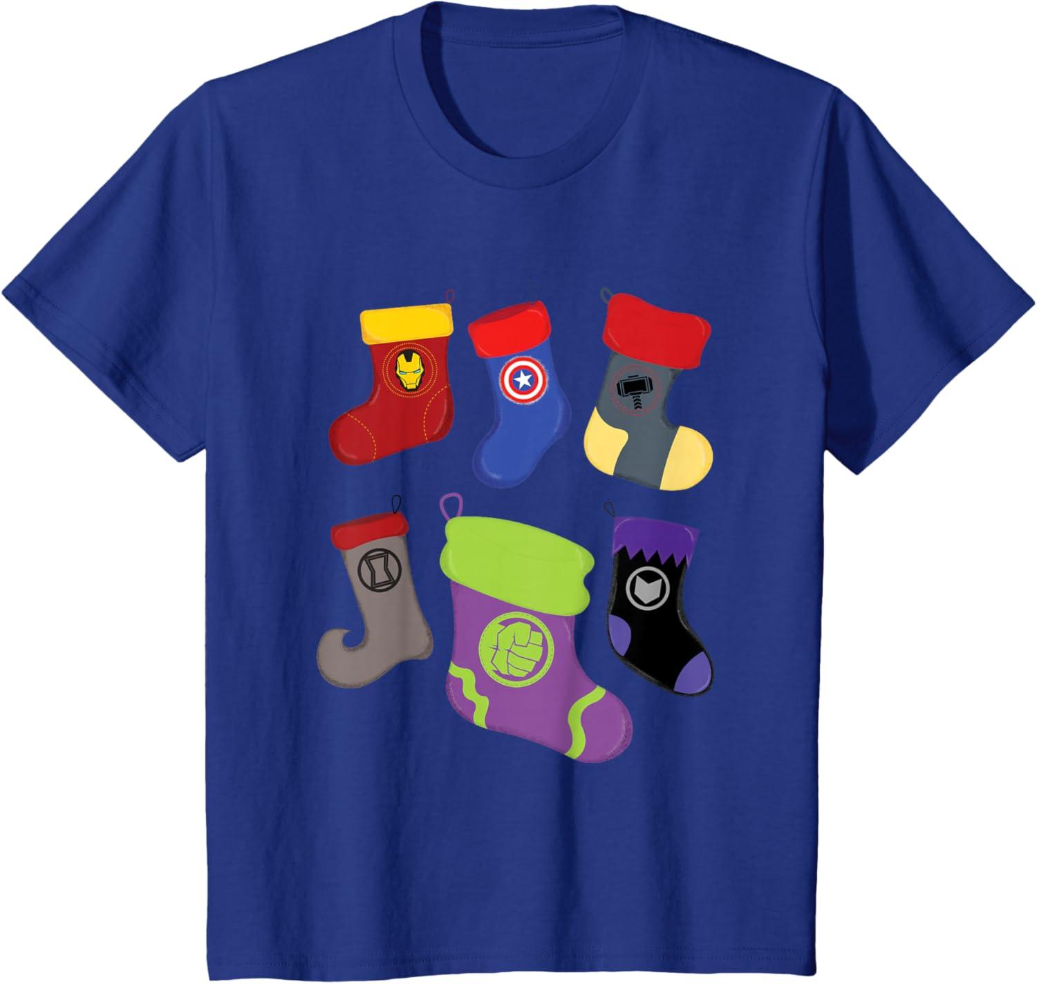 Save up to 40% on Marvel Holiday Avengers Team Festive Christmas Stockings T-Shirt(Royal Blue) styles during our end-of-season sale.