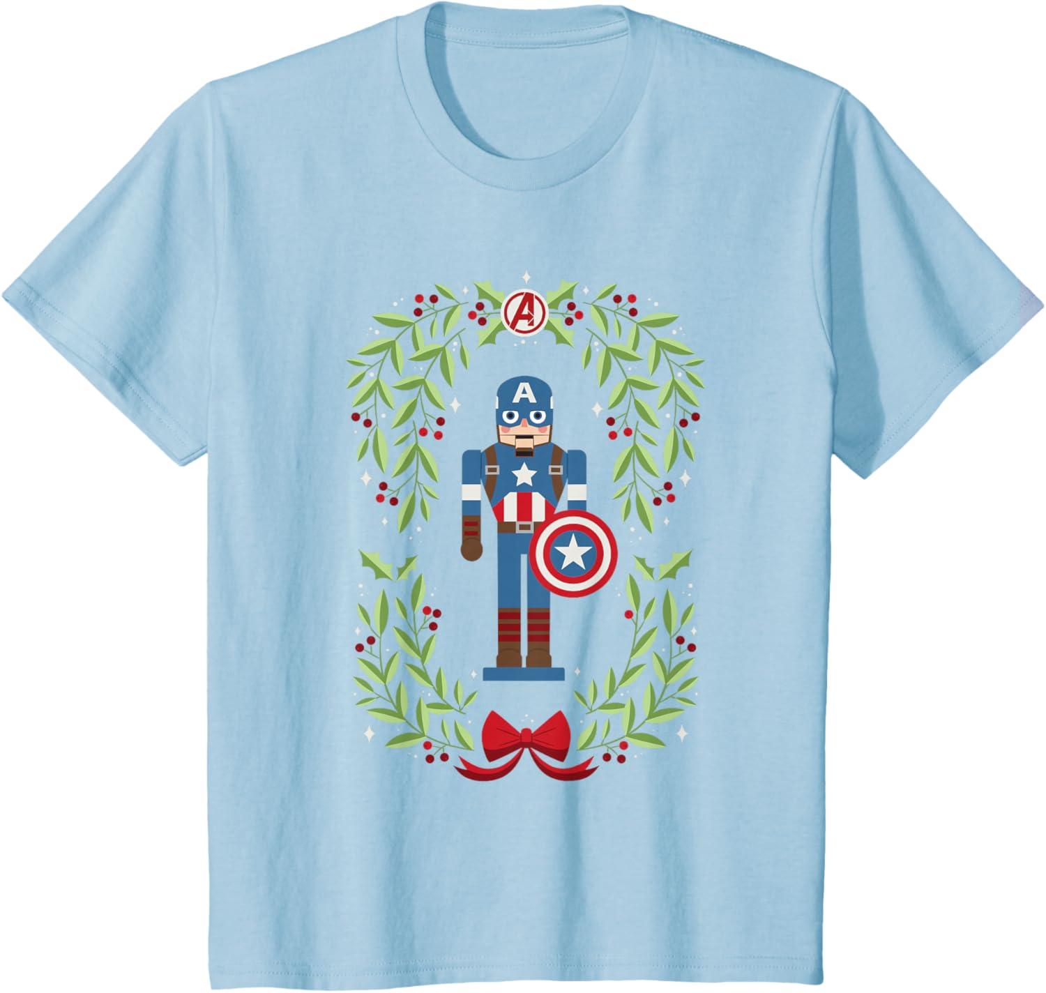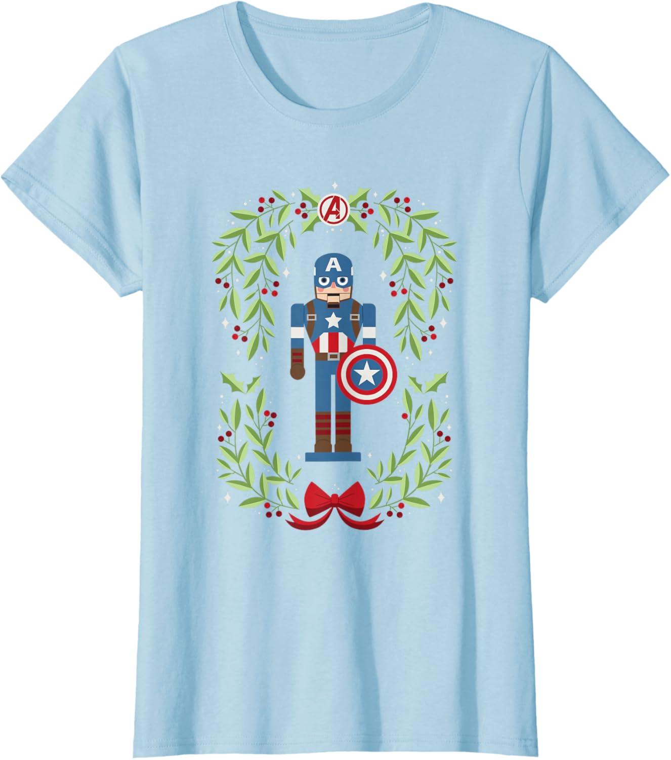 Marvel Holiday Christmas Avengers Captain America Nutcracker T-Shirt(Baby Blue)