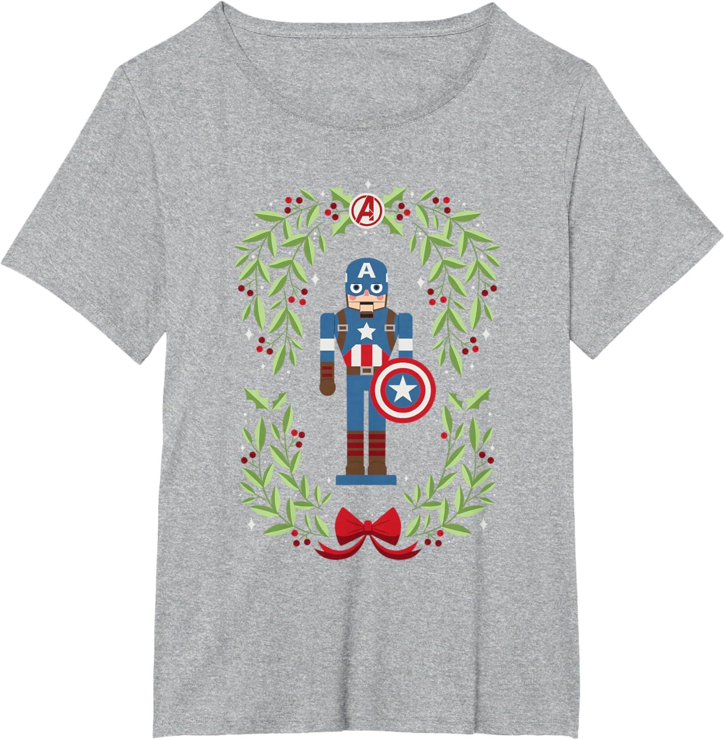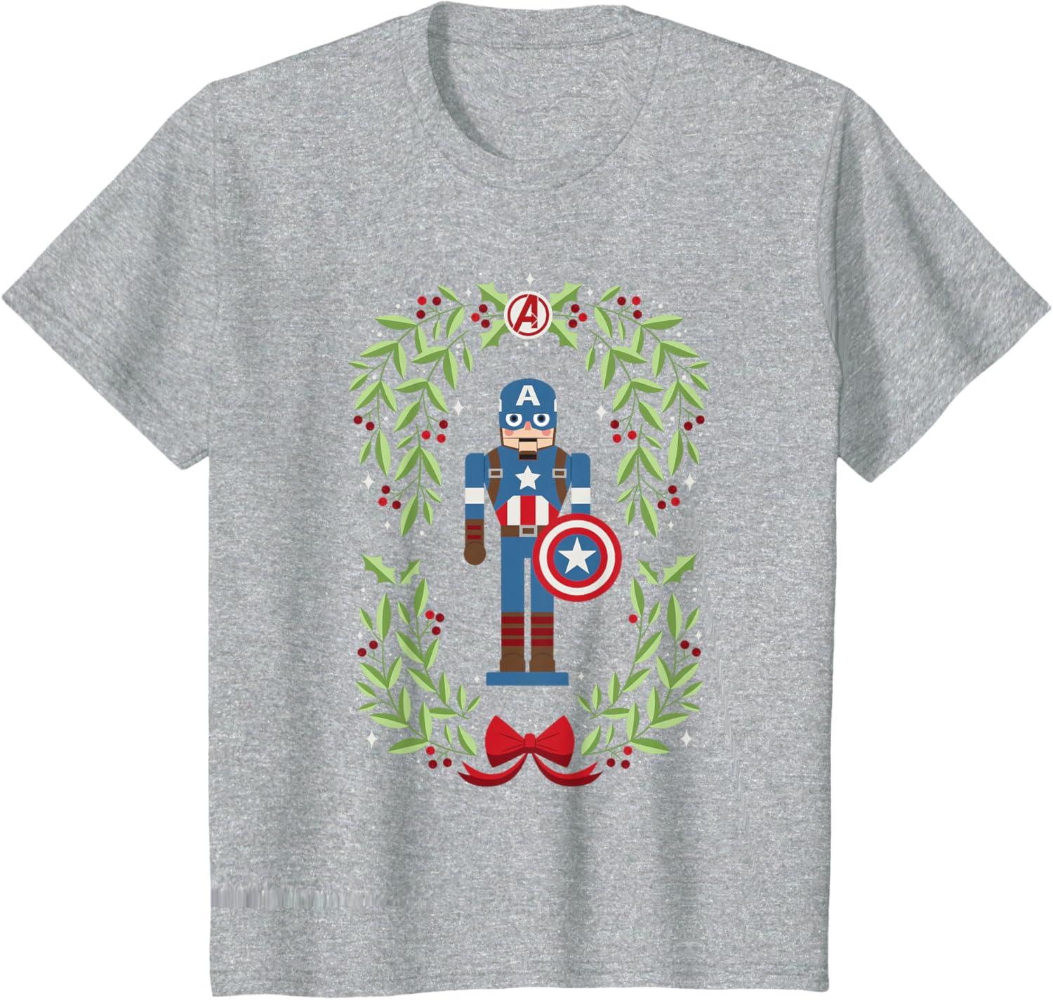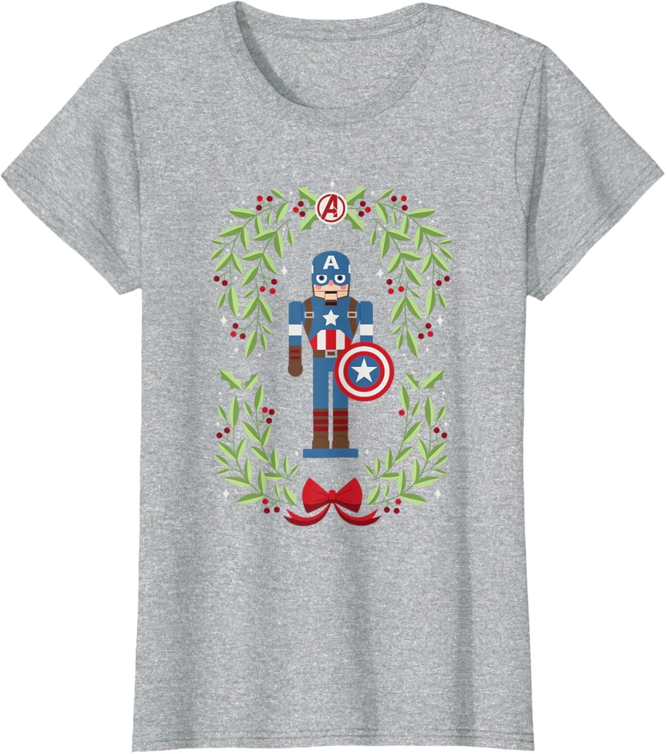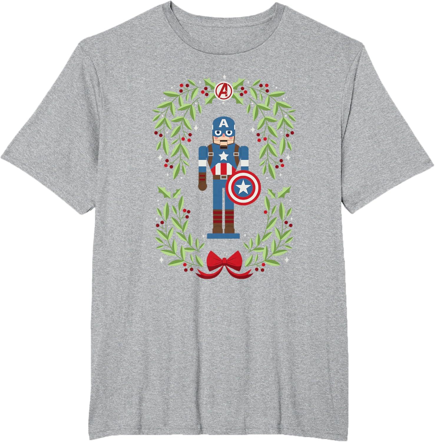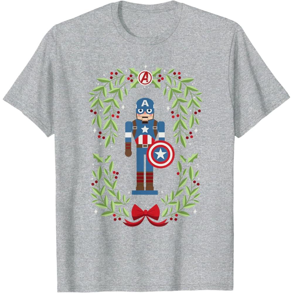 Marvel Holiday Christmas Avengers Captain America Nutcracker T-Shirt(Heather Grey)