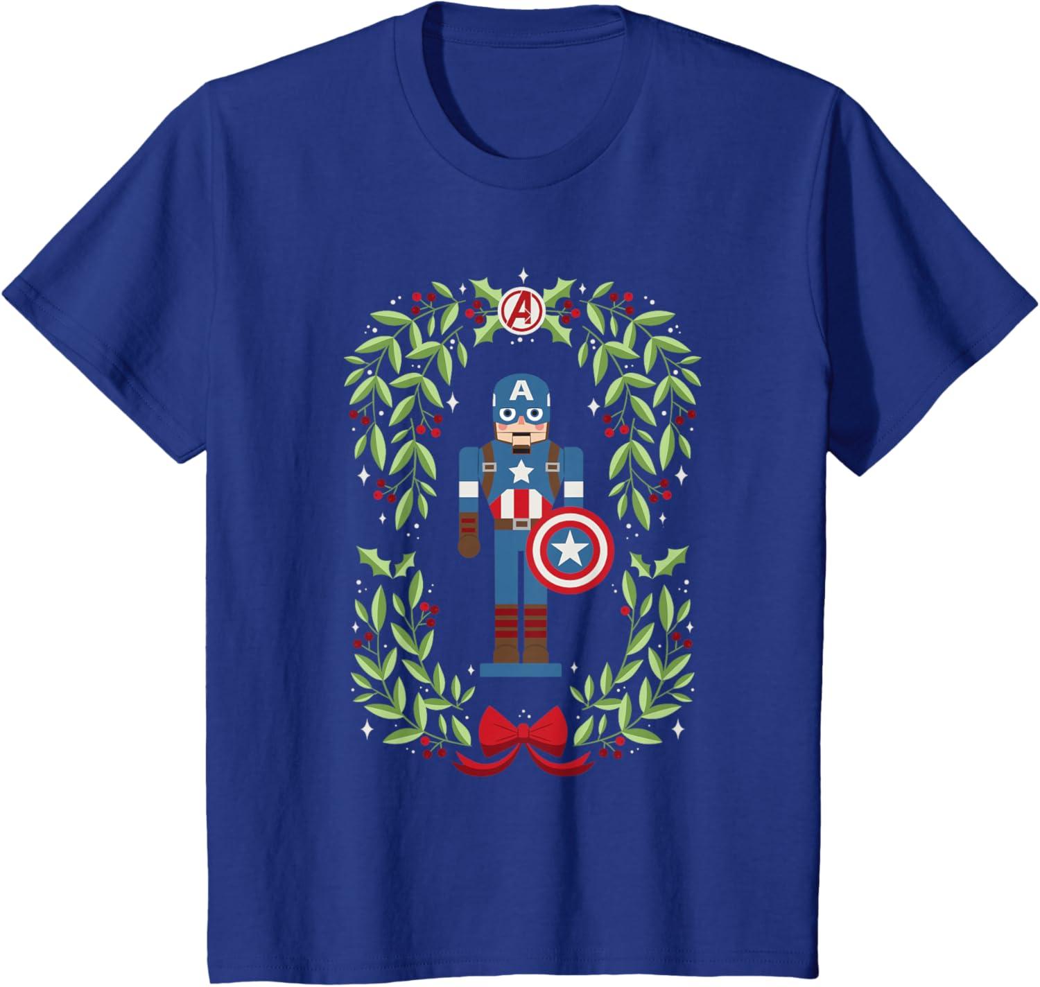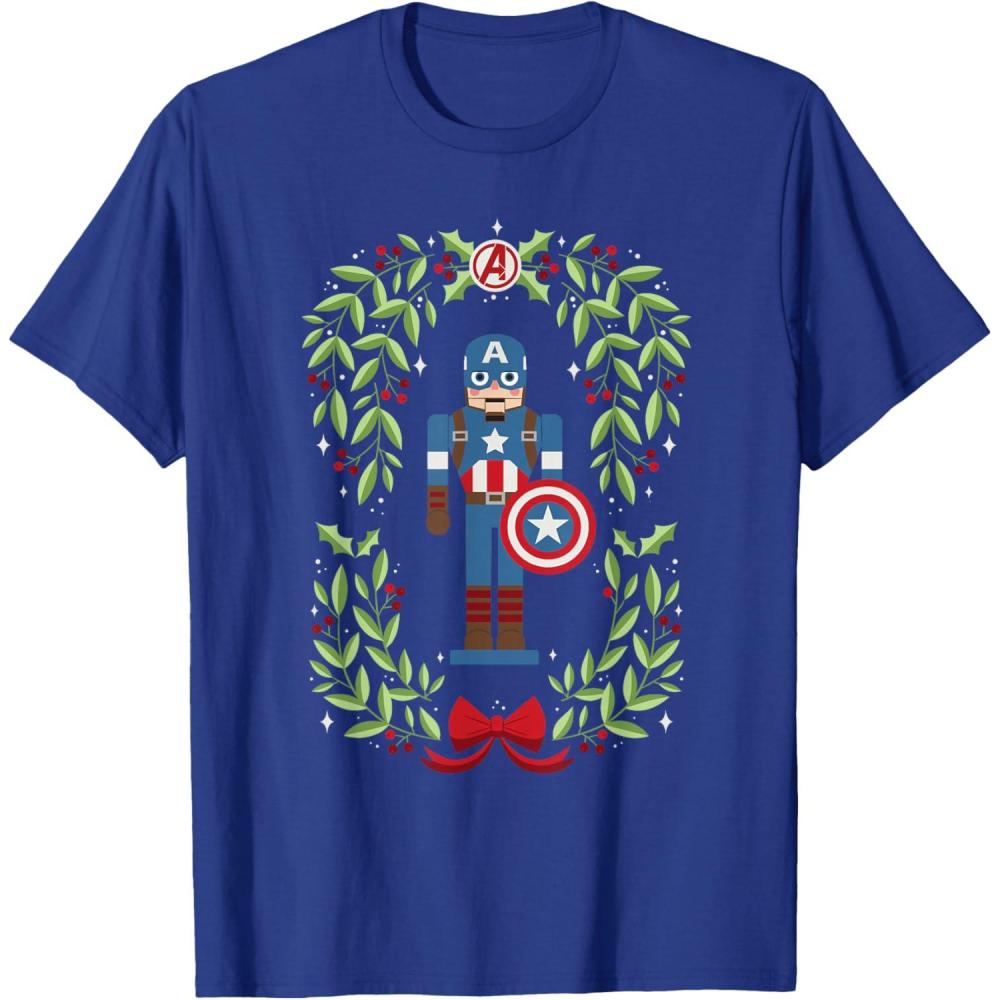 Marvel Holiday Christmas Avengers Captain America Nutcracker T-Shirt(Royal Blue)