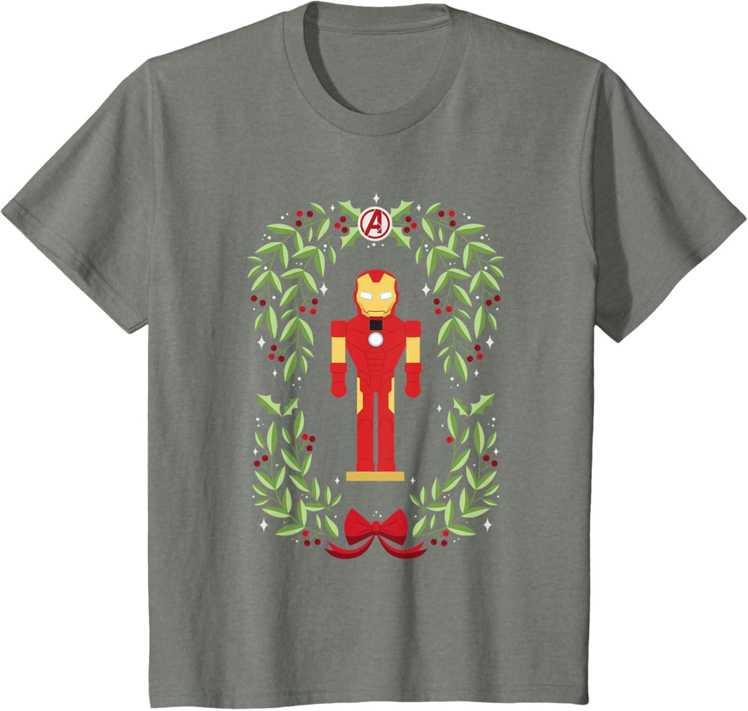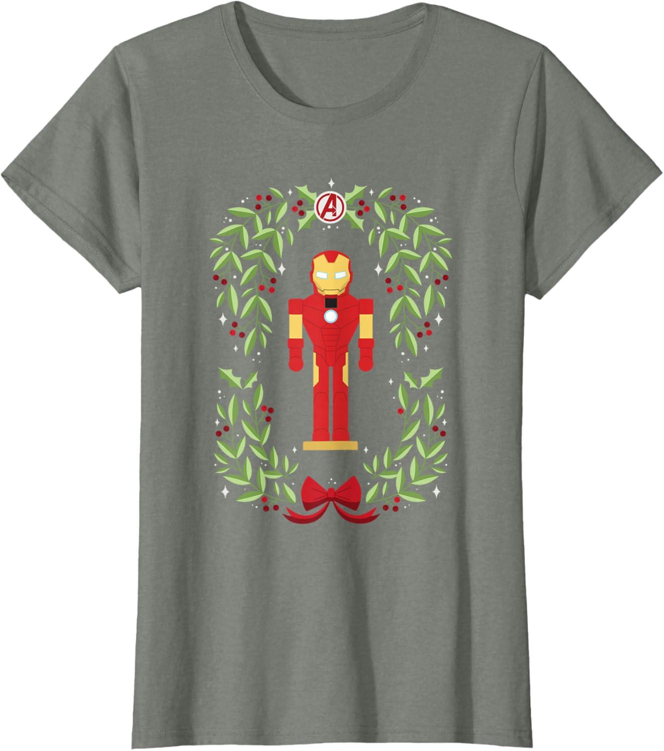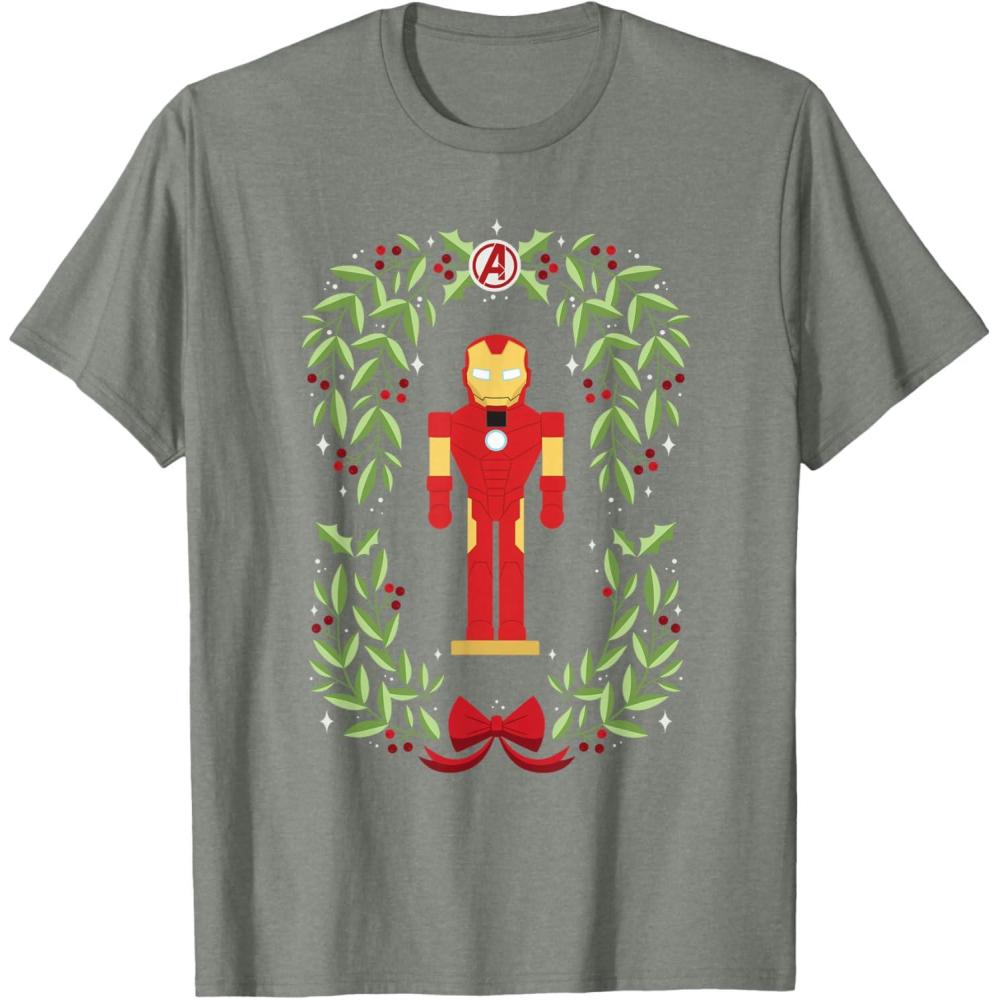 Marvel Holiday Christmas Avengers Holly Iron Man Nutcracker T-Shirt(Olive Heather)