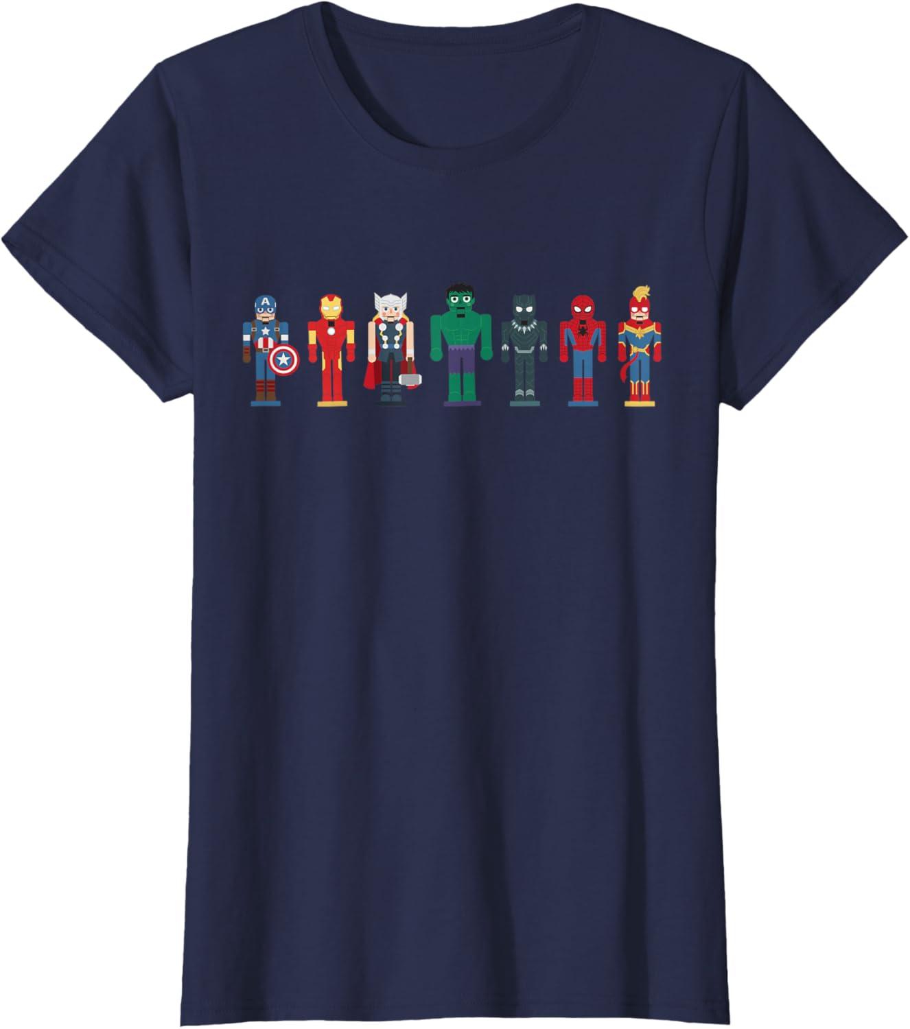Marvel Holiday Christmas Avengers Team Festive Nutcrackers T-Shirt(Navy Blue)