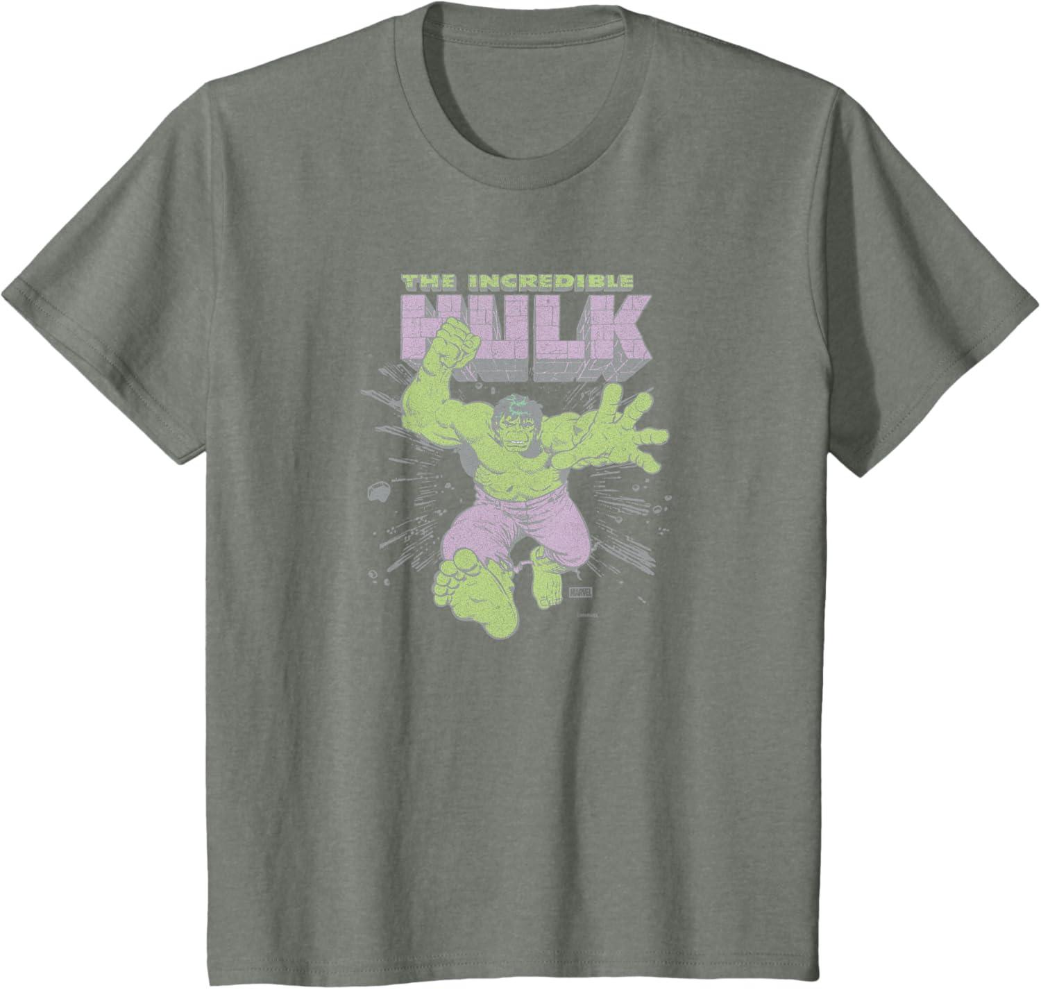 Marvel – HULK Retro Faded Style T-Shirt(Olive Heather)