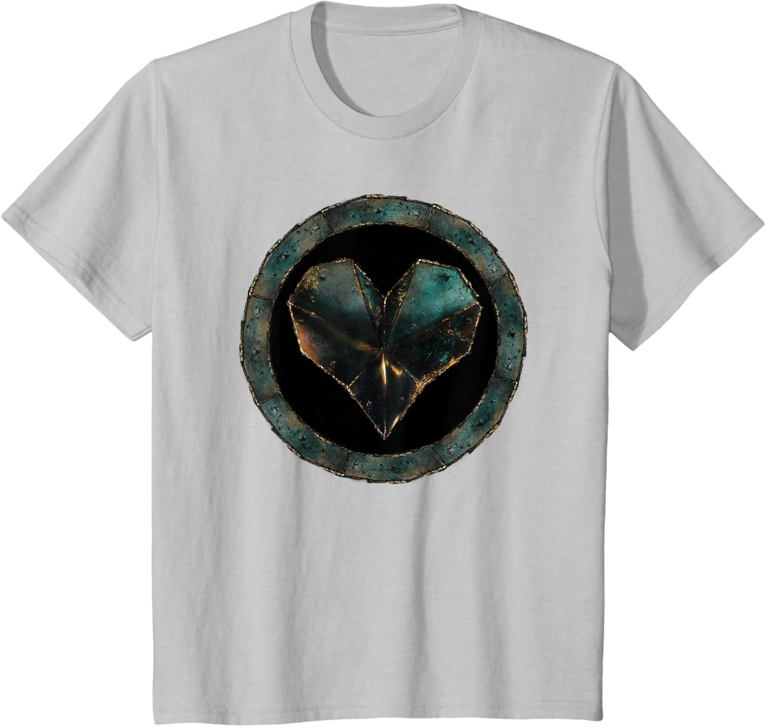 Marvel Iron Heart Metallic Heart Vintage Chest Emblem T-Shirt(Silver Grey)