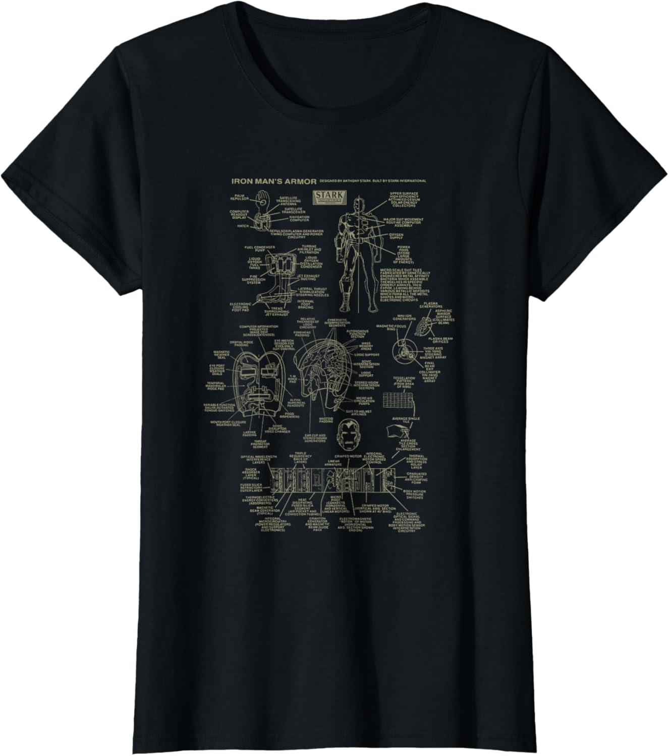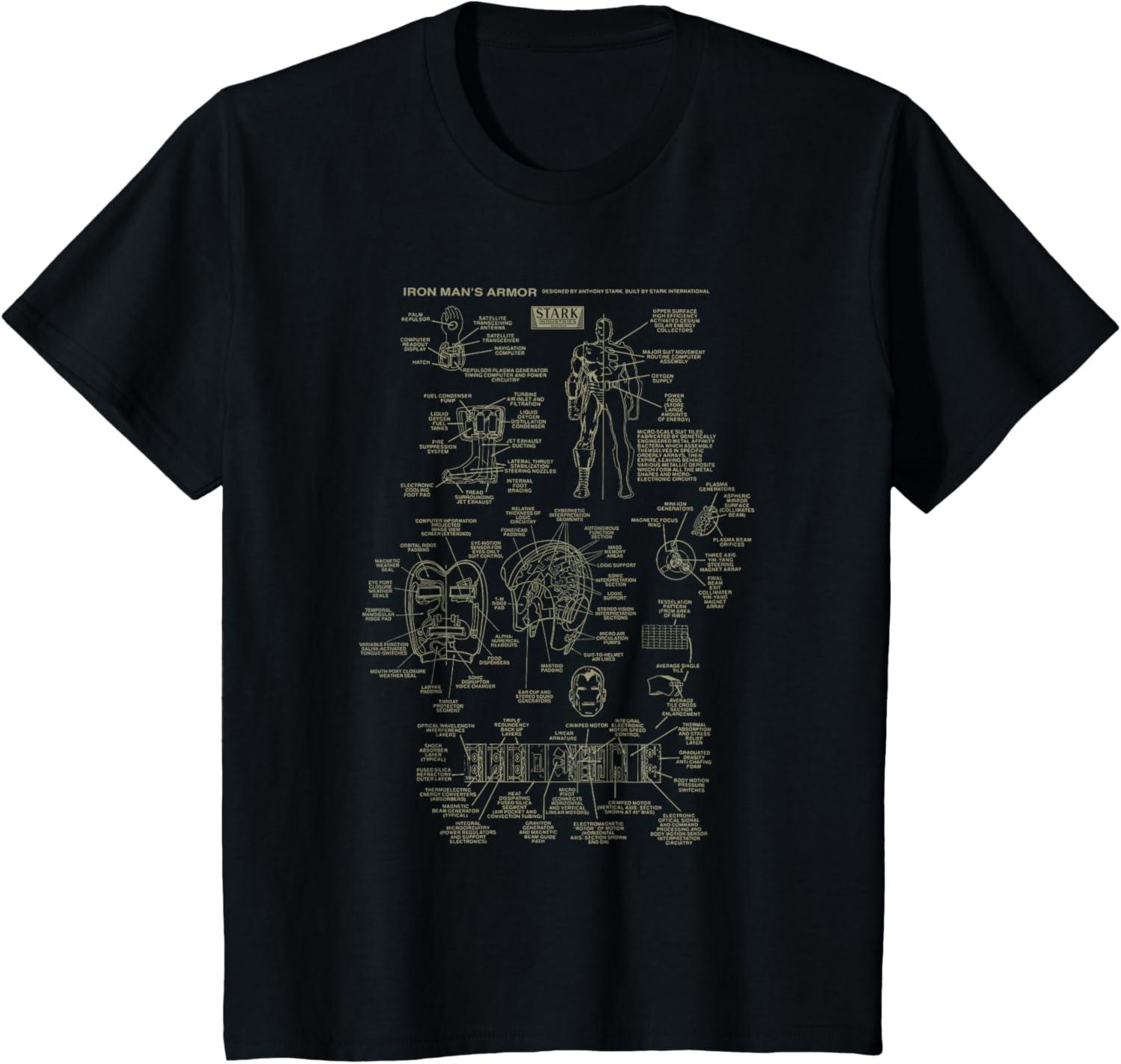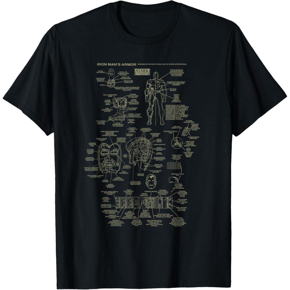 Marvel Iron Man Stark Industries Armor Details T-Shirt T-Shirt(Black)