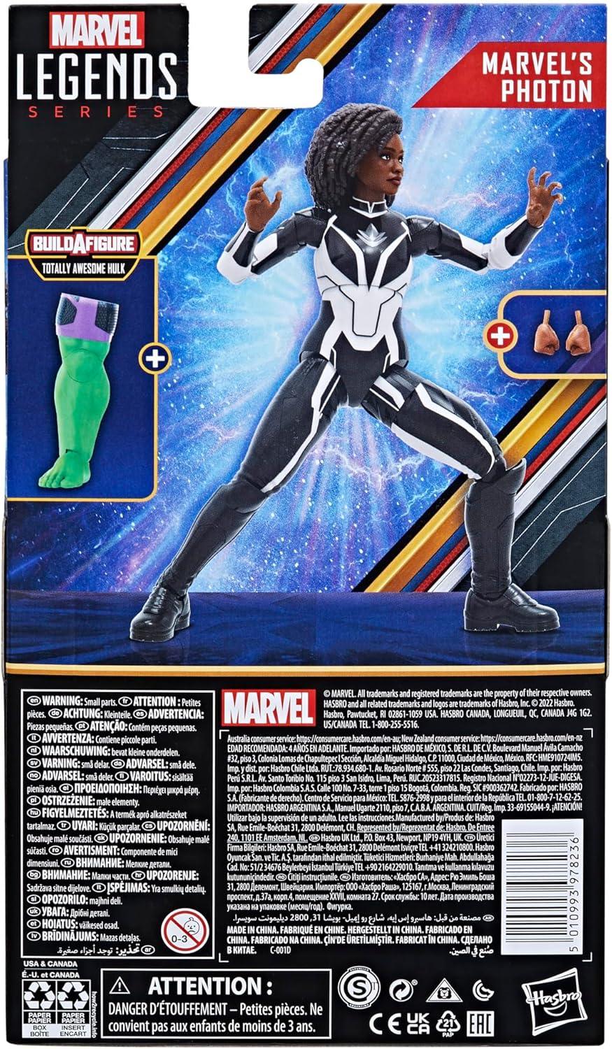 Monica Rambeau’s life changed forever at Westview, where her exposure to reality-altering energy imbued her with the power to perceive and manipulate all energy along the electromagnetic spectrum. This collectible 6-inch-scale Marvel Legends figure is detailed to look like the Marvel’s Photon character from Marvel Studios’ The Marvels, featuring premium detail and multiple points of articulation. With over 80 years of entertainment history, Marvel has become a cornerstone of fan collections around the world. With the Marvel Legends Series, fan favorite Marvel Comic Universe and Marvel Cinematic Universe characters are designed with premium detail and articulation for posing and display in collections. From figures to vehicles to premium roleplay items, the Marvel Legends Series offers elite character-inspired products for Marvel fans and collectors. Additional figures each sold separately. (Subject to availability.) Copyright 2022 MARVEL. Hasbro and all related terms are trademarks of Hasbro.