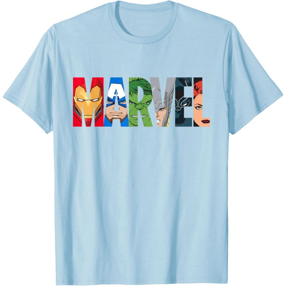 Marvel Logo Avengers Super Heroes T-Shirt(Baby Blue)