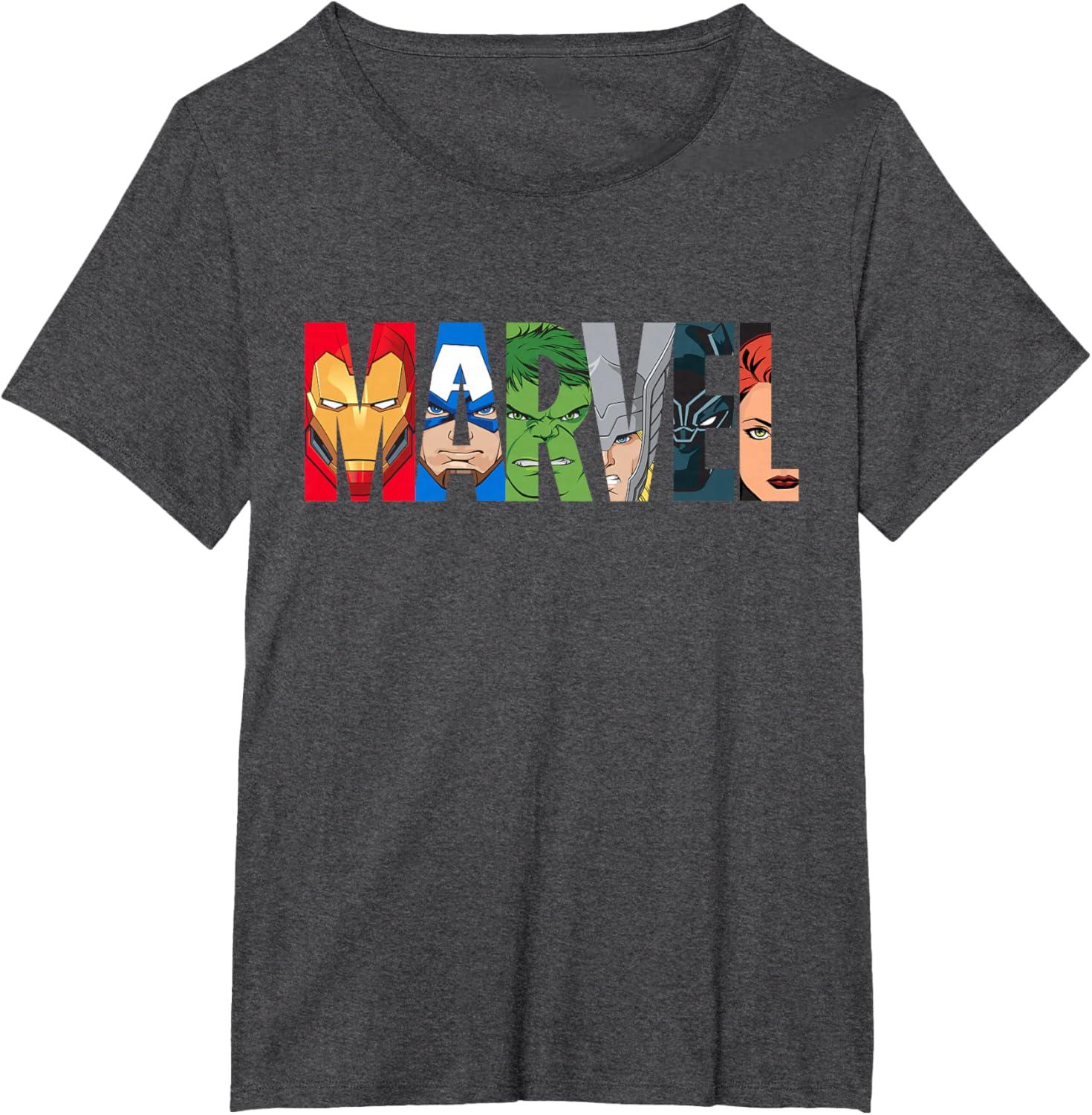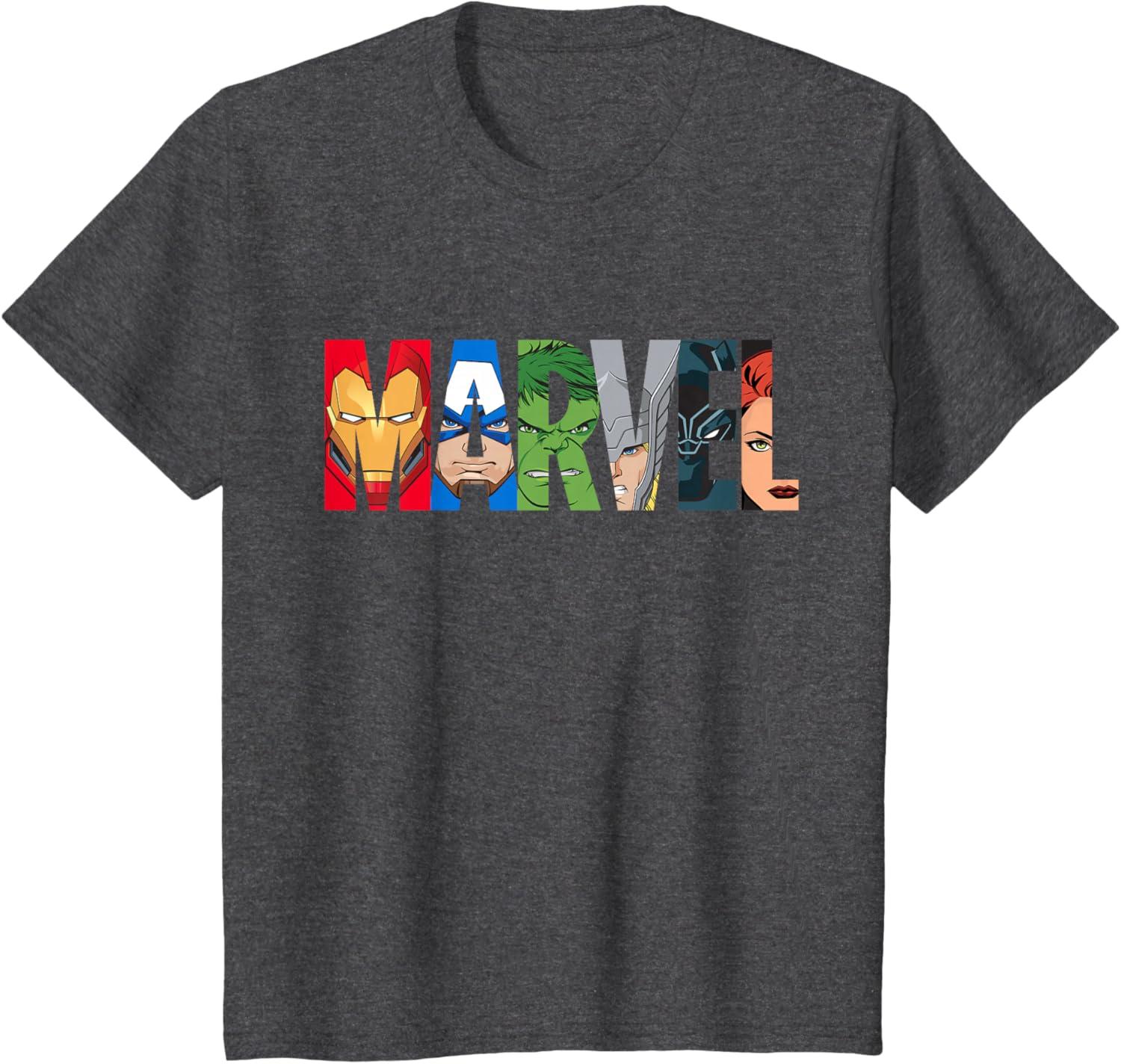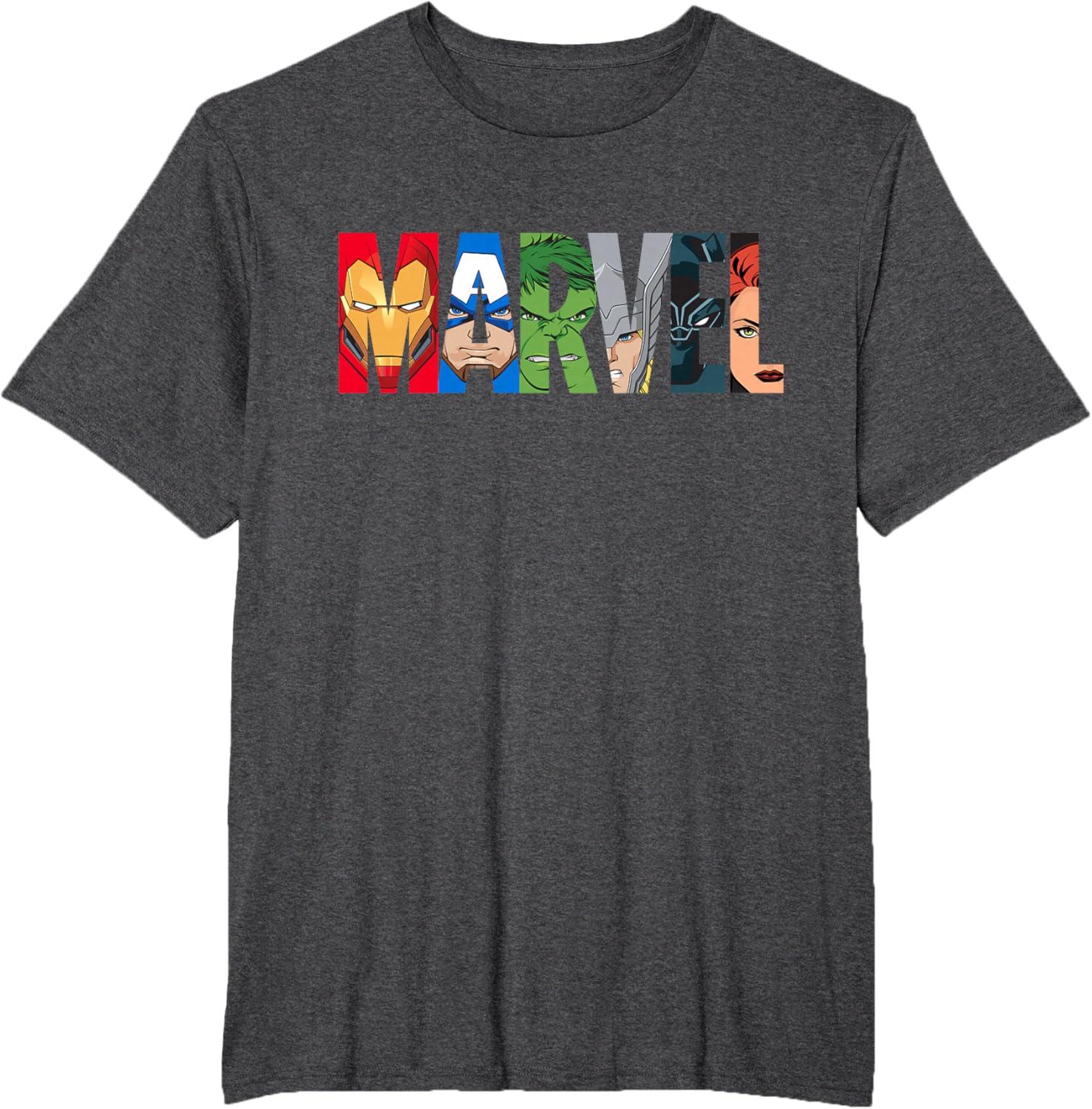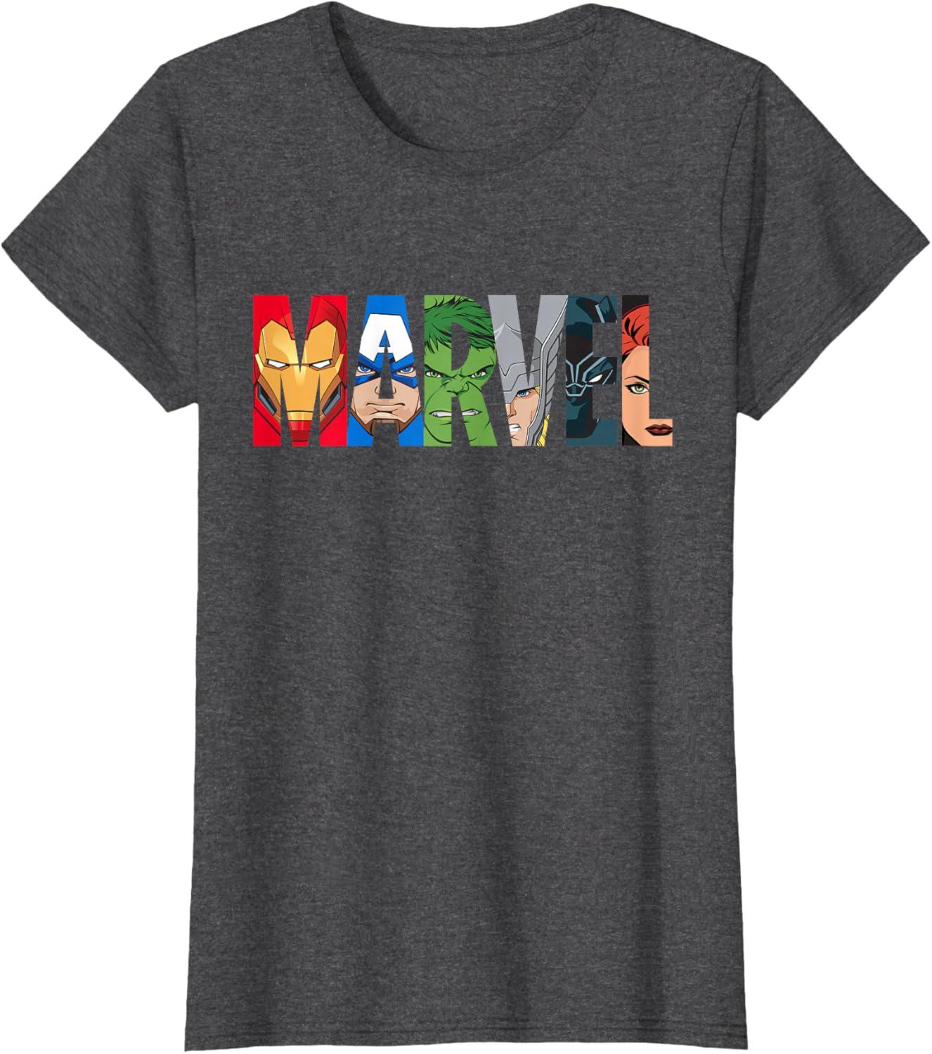 Marvel Logo Avengers Super Heroes T-Shirt(Dark Heather Grey)