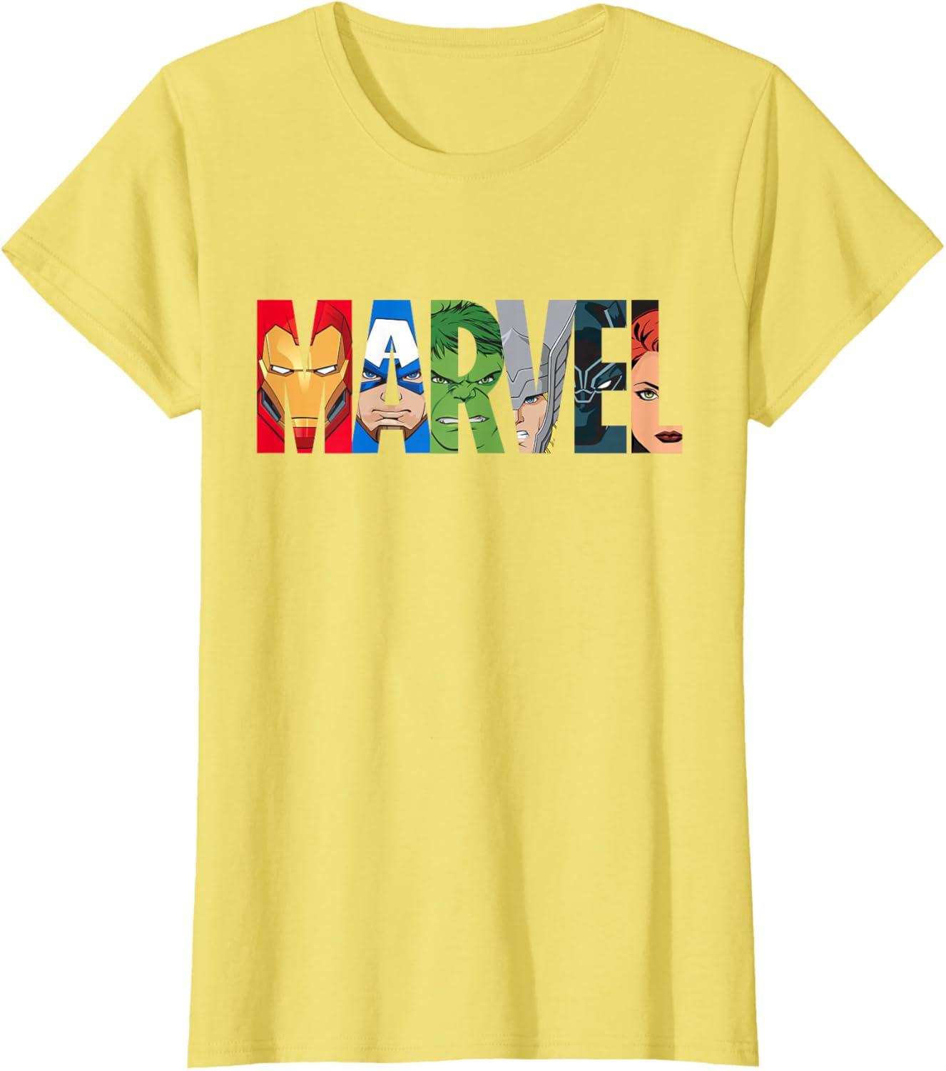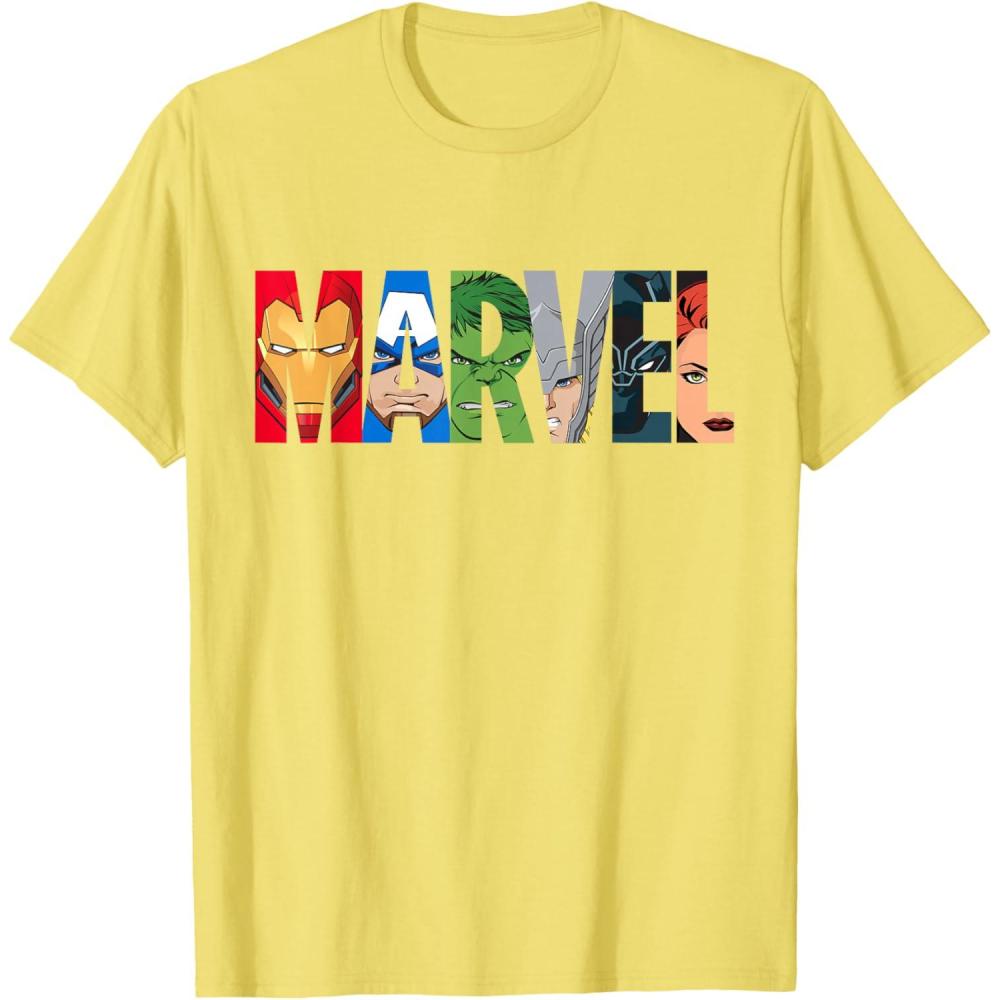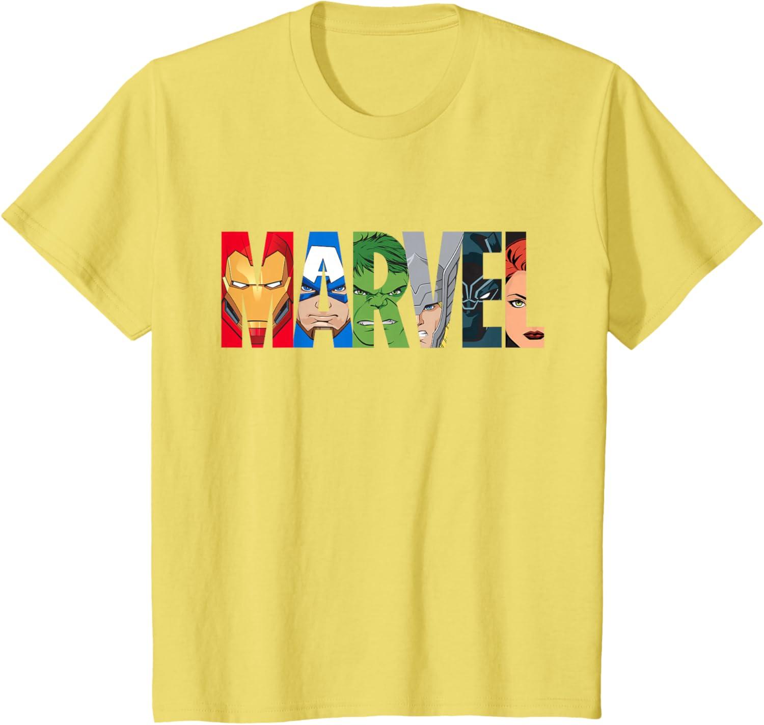 Marvel Logo Avengers Super Heroes T-Shirt(Lemon Yellow)