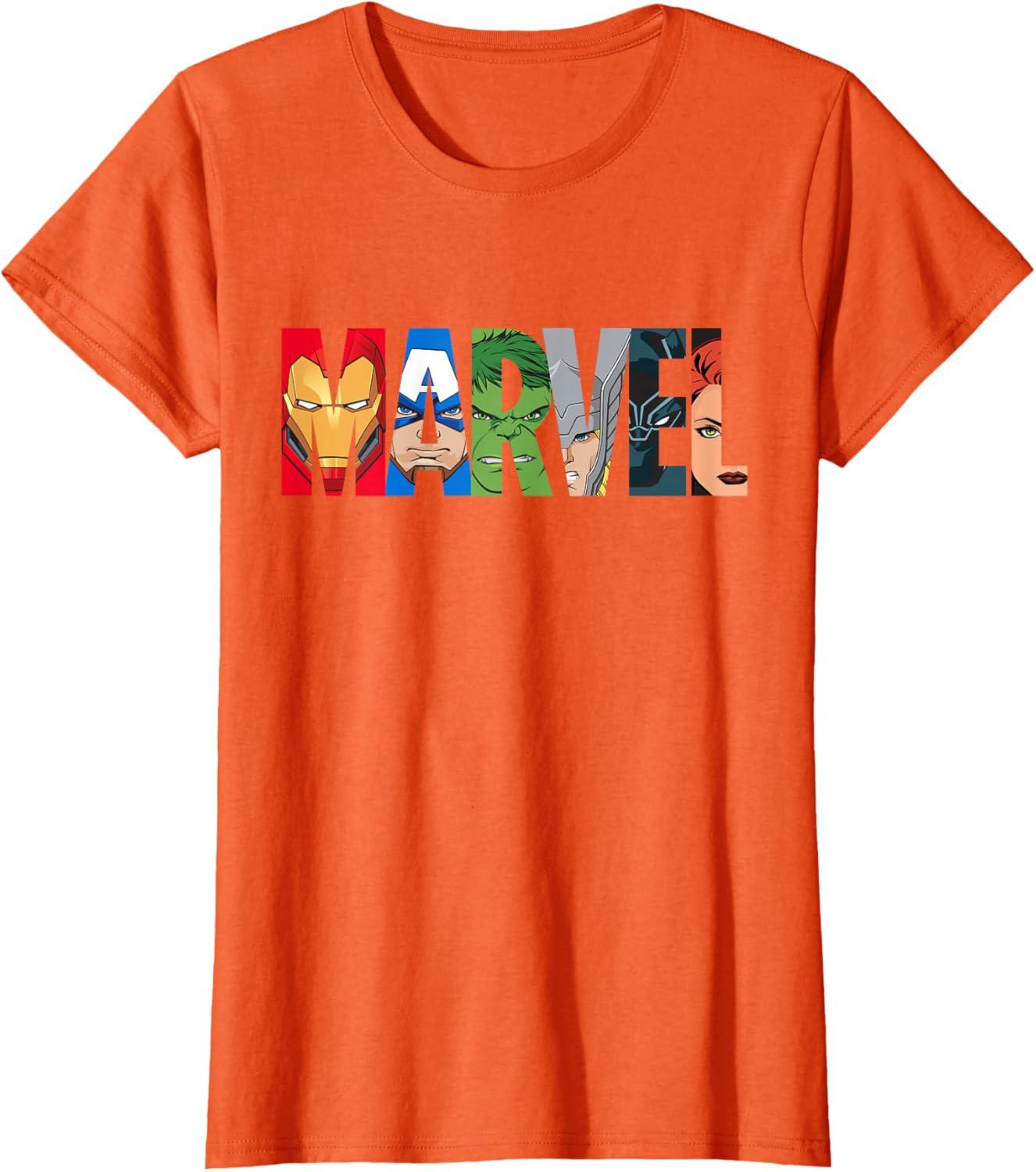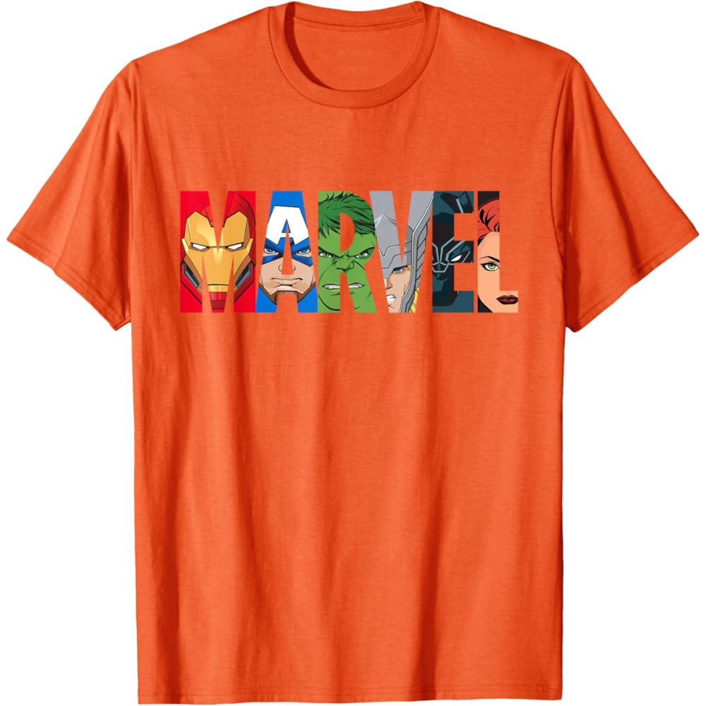 Marvel Logo Avengers Super Heroes T-Shirt(Orange)
