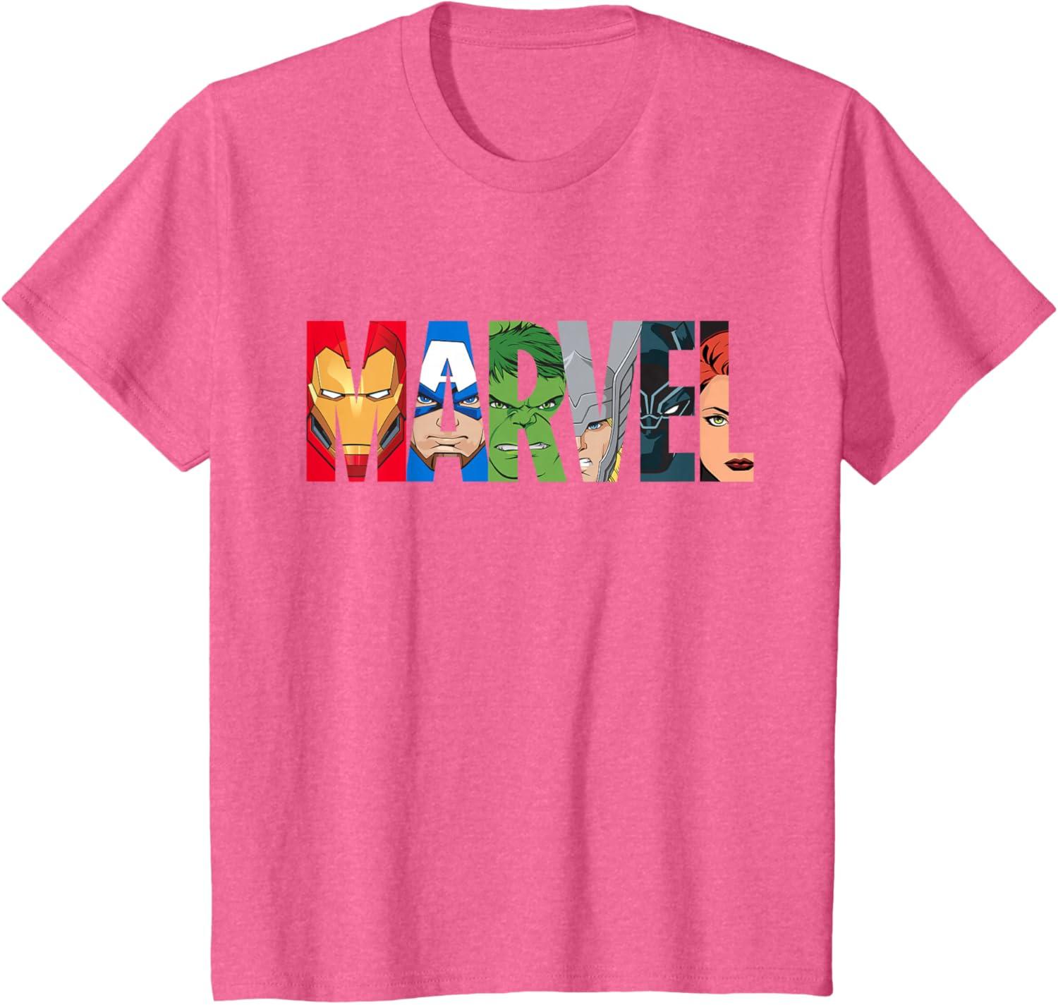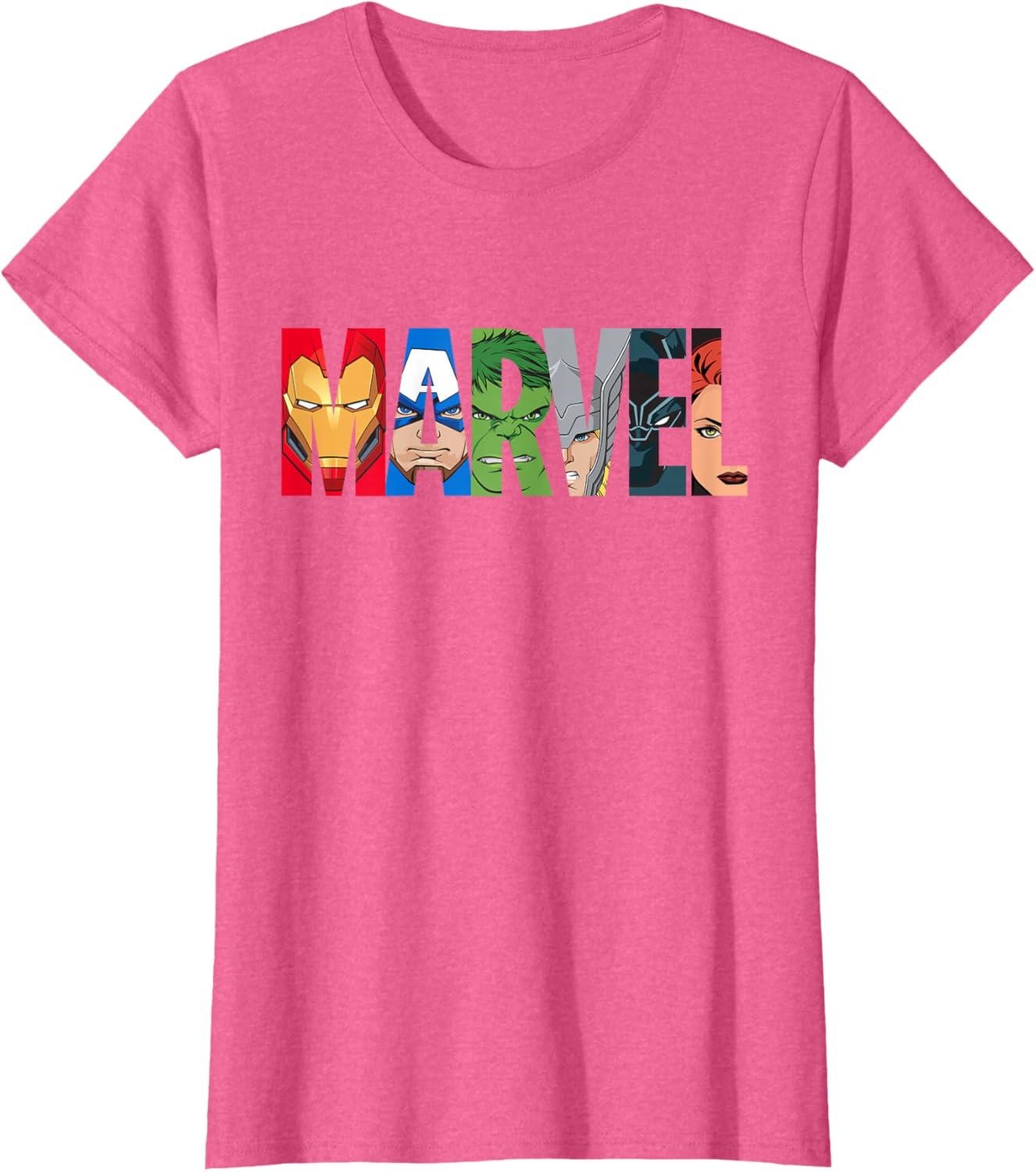 Marvel Logo Avengers Super Heroes T-Shirt(Pink Heather)