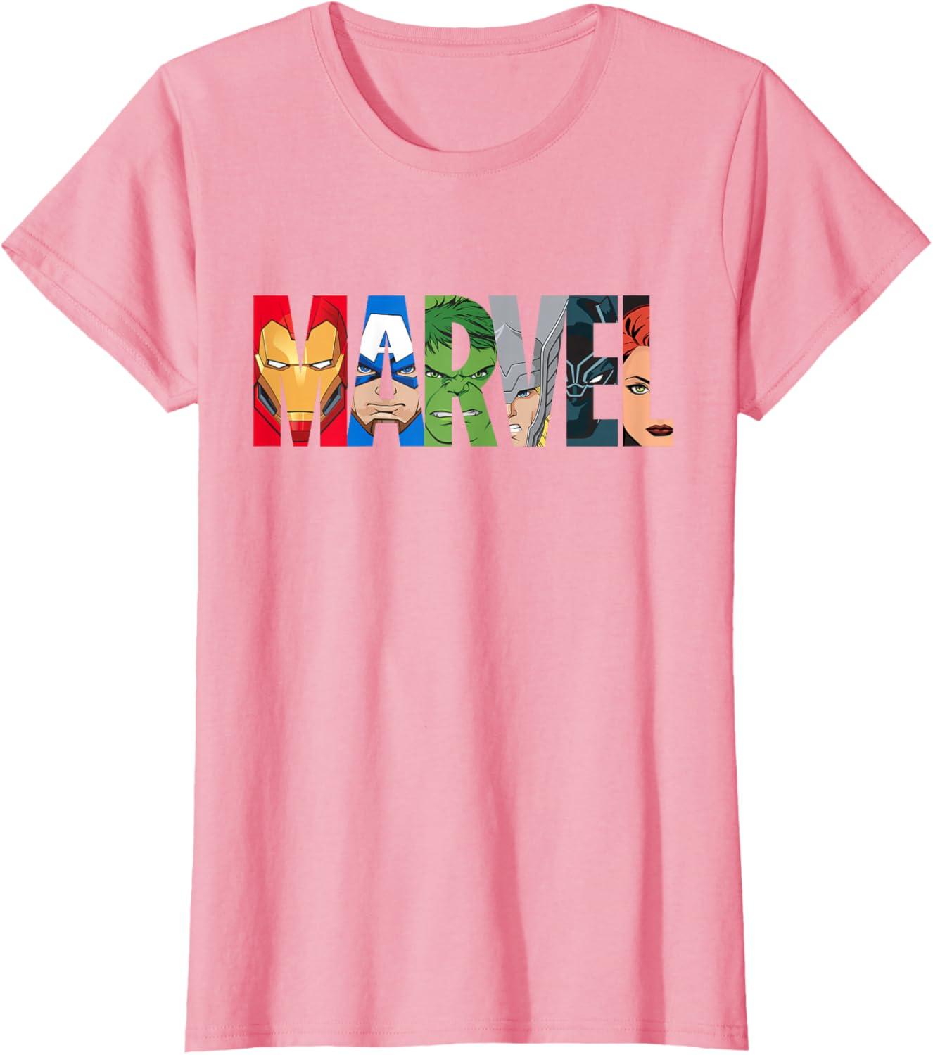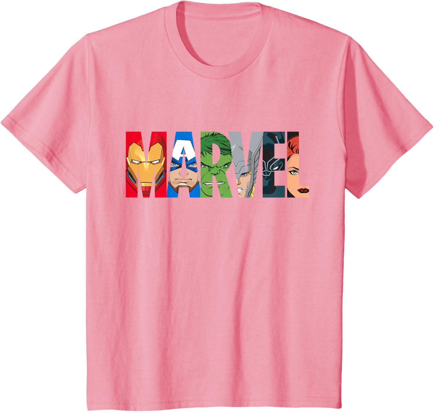 Marvel Logo Avengers Super Heroes T-Shirt(Pink)