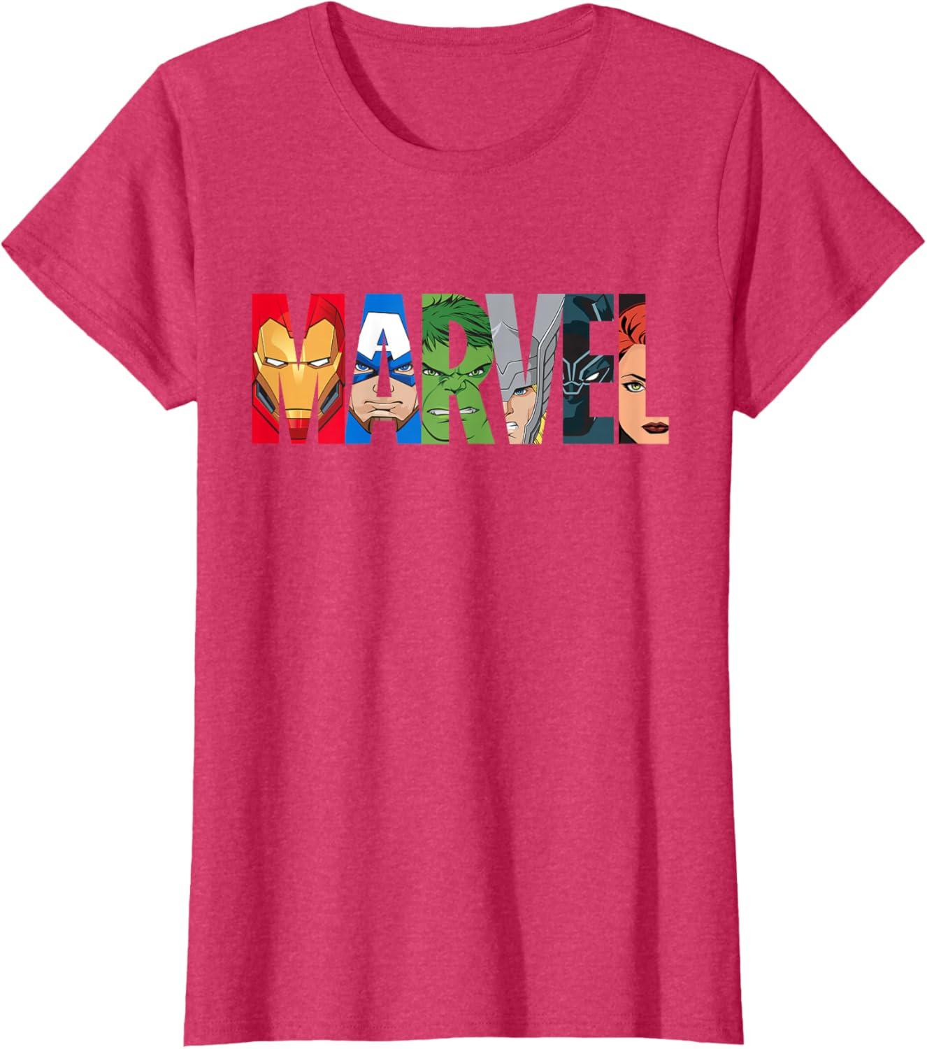 Marvel Logo Avengers Super Heroes T-Shirt(Red Heather)
