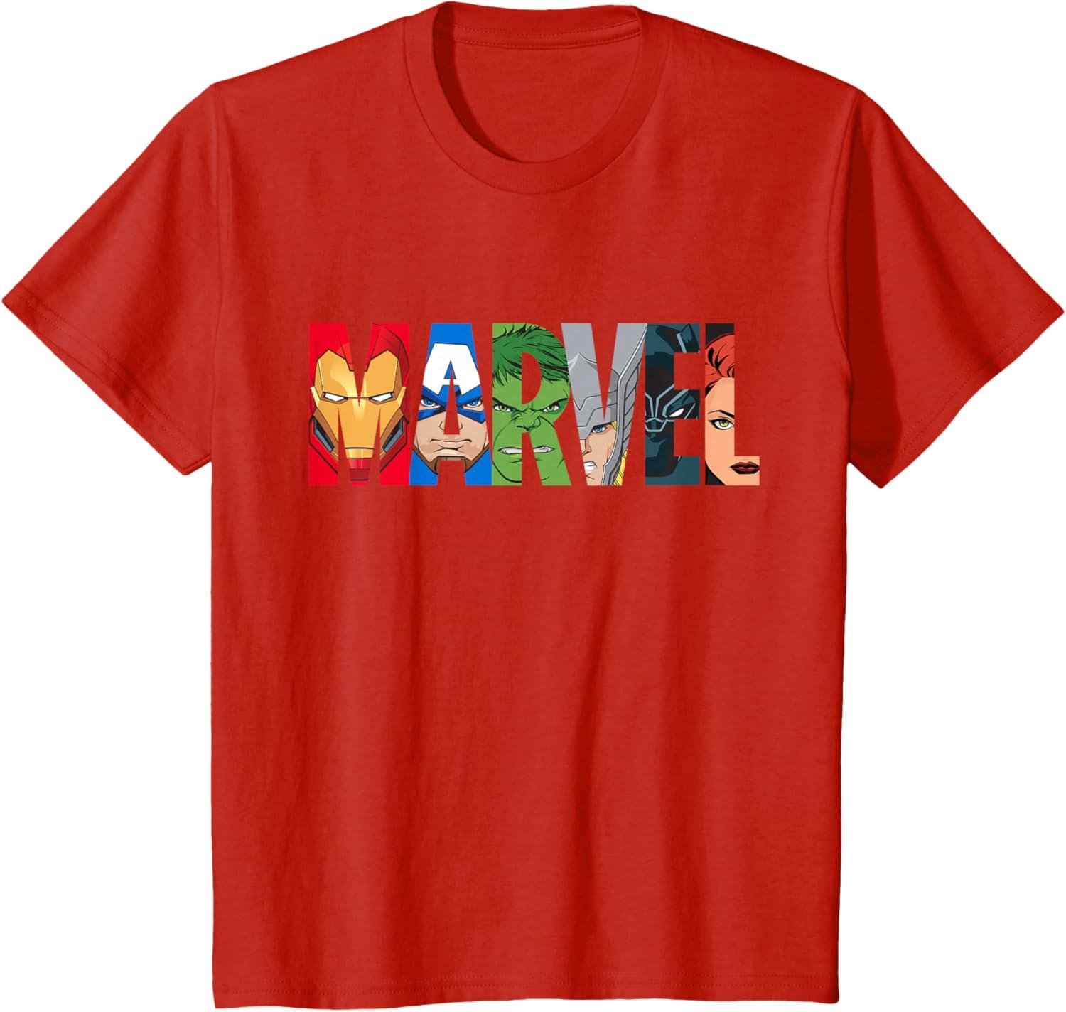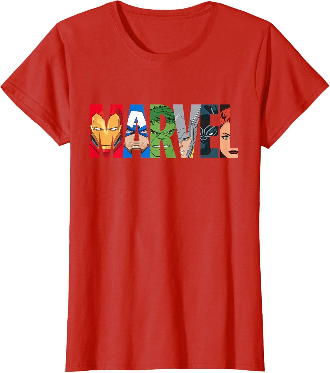 Marvel Logo Avengers Super Heroes T-Shirt(Red)