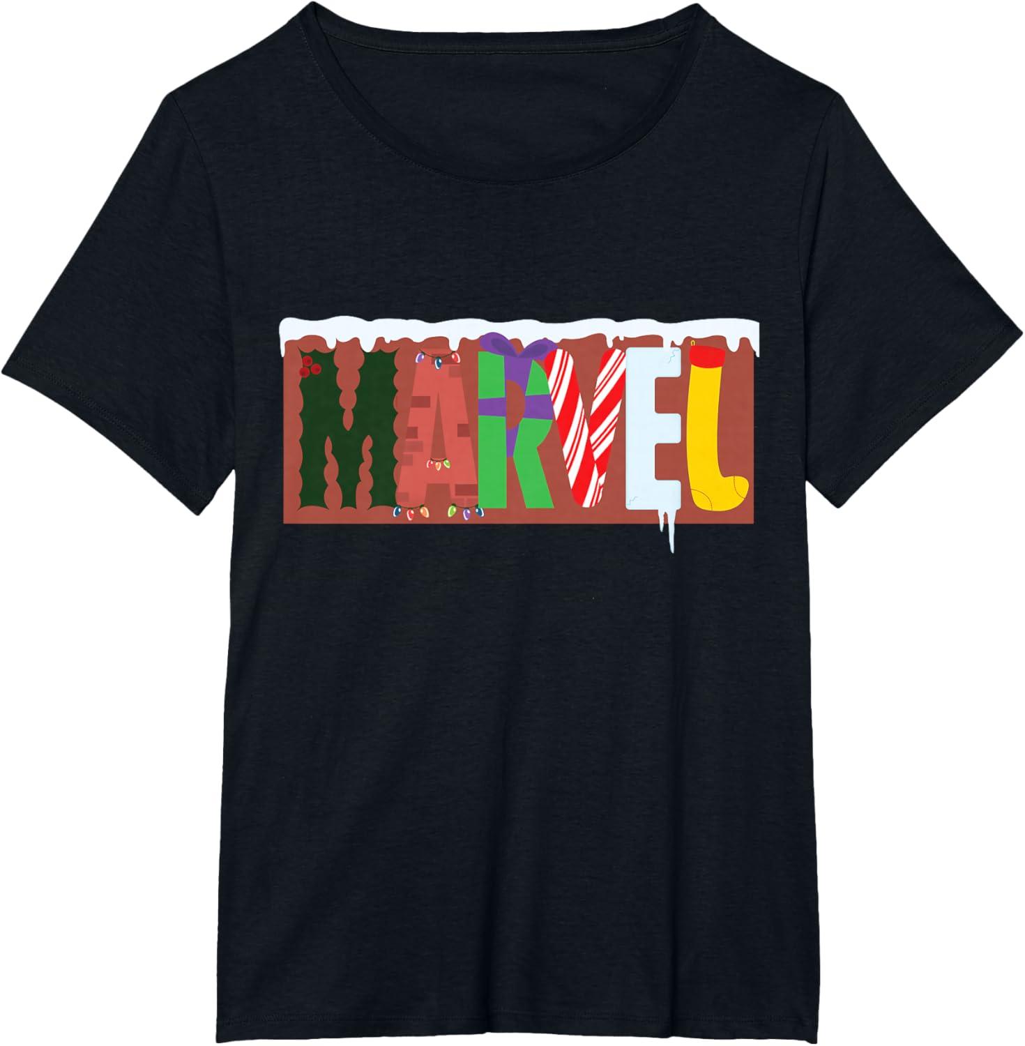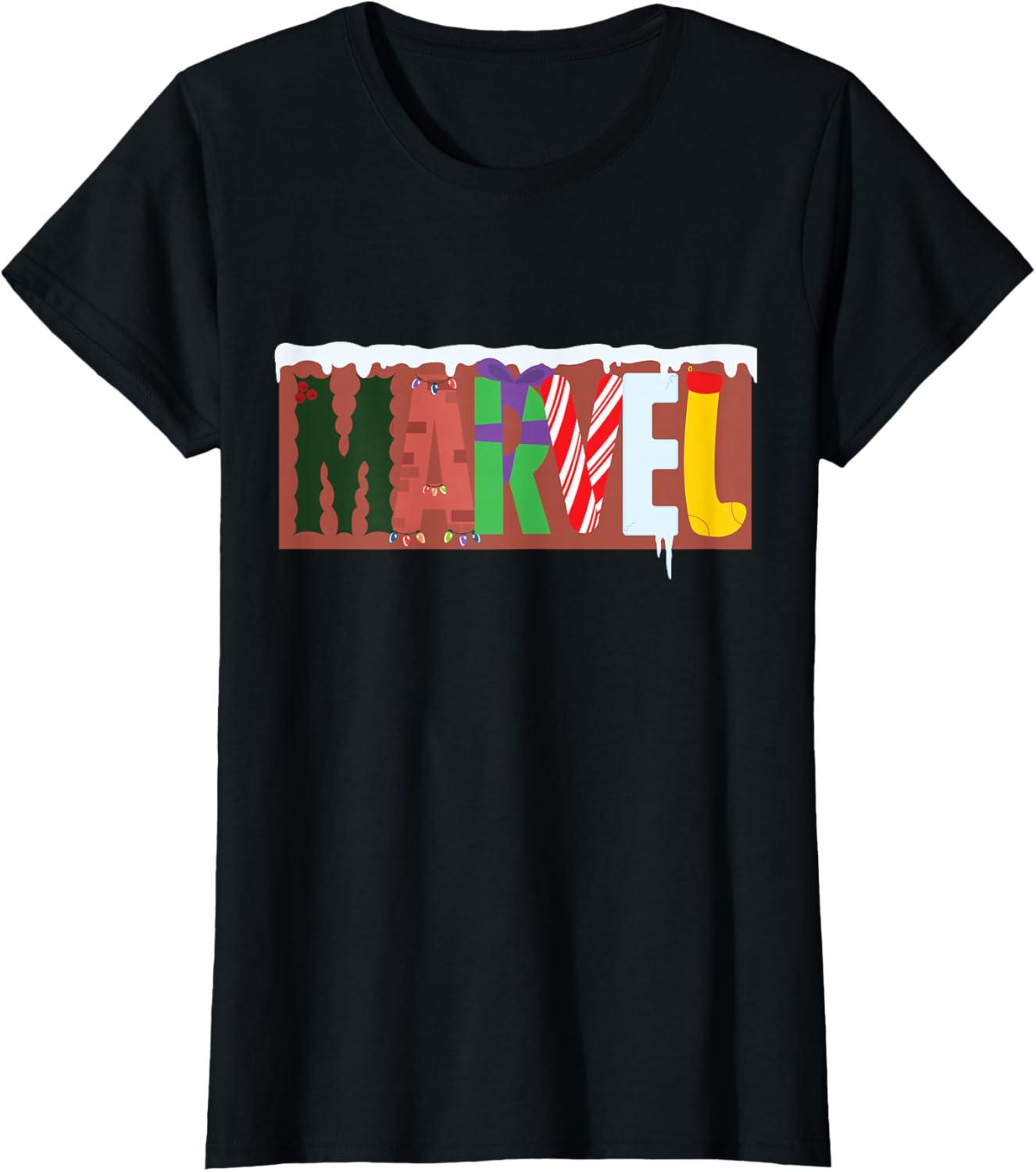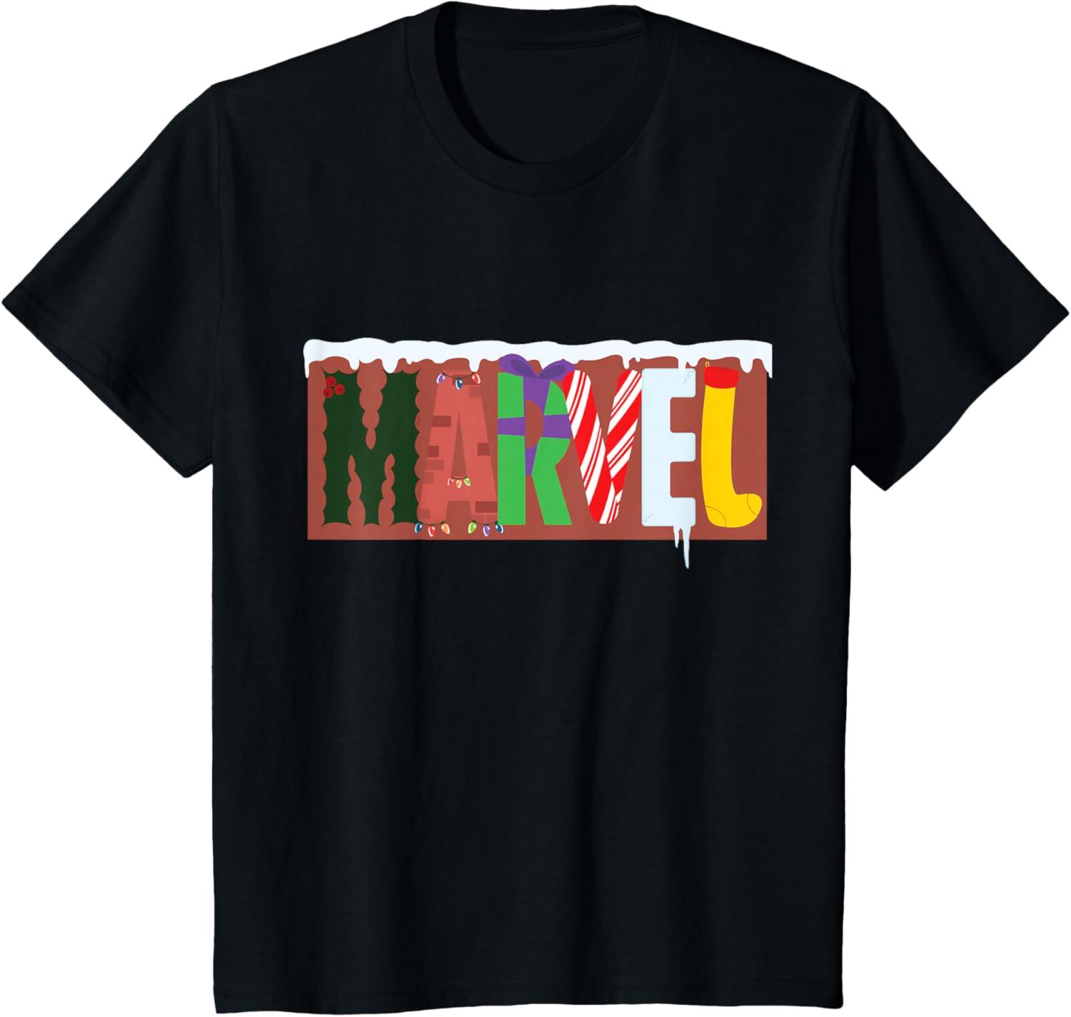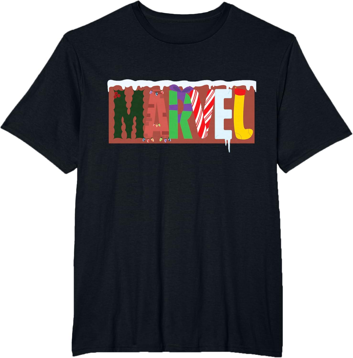 Have a heroic holiday season with the Marvel Super Heroes! This fun and festive official Marvel tee or hoodie features the famous Marvel logo with a colorful Christmas theme, including holly leaves and berries, a chimney decorated with Christmas lights, a Hulk-style giftwrapped present, a candy cane, snow, and a stocking with Iron Main flair. A great Christmas gift for a Marvel Super Heroes or Avengers fan! Planning a winter holiday trip to Avengers Campus at Disney California Adventure Park or another super destination? Get multiples to coordinate and match with friends and family for even more hero-sized fun! Available in youth and adult sizes. Find it in a t-shirt, premium t-shirt, tank top, v-neck, long sleeve tee, hoodie, and sweatshirt.