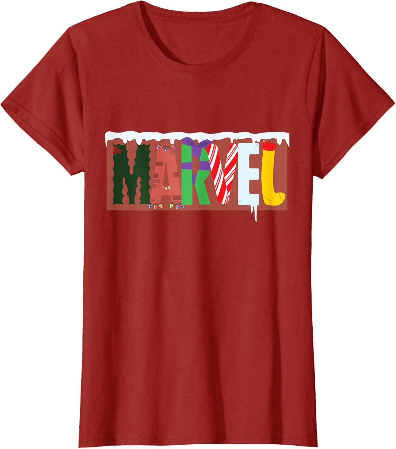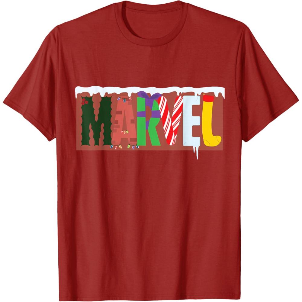 Marvel Logo with Christmas Holiday Avengers Decorations T-Shirt(Cranberry Red)