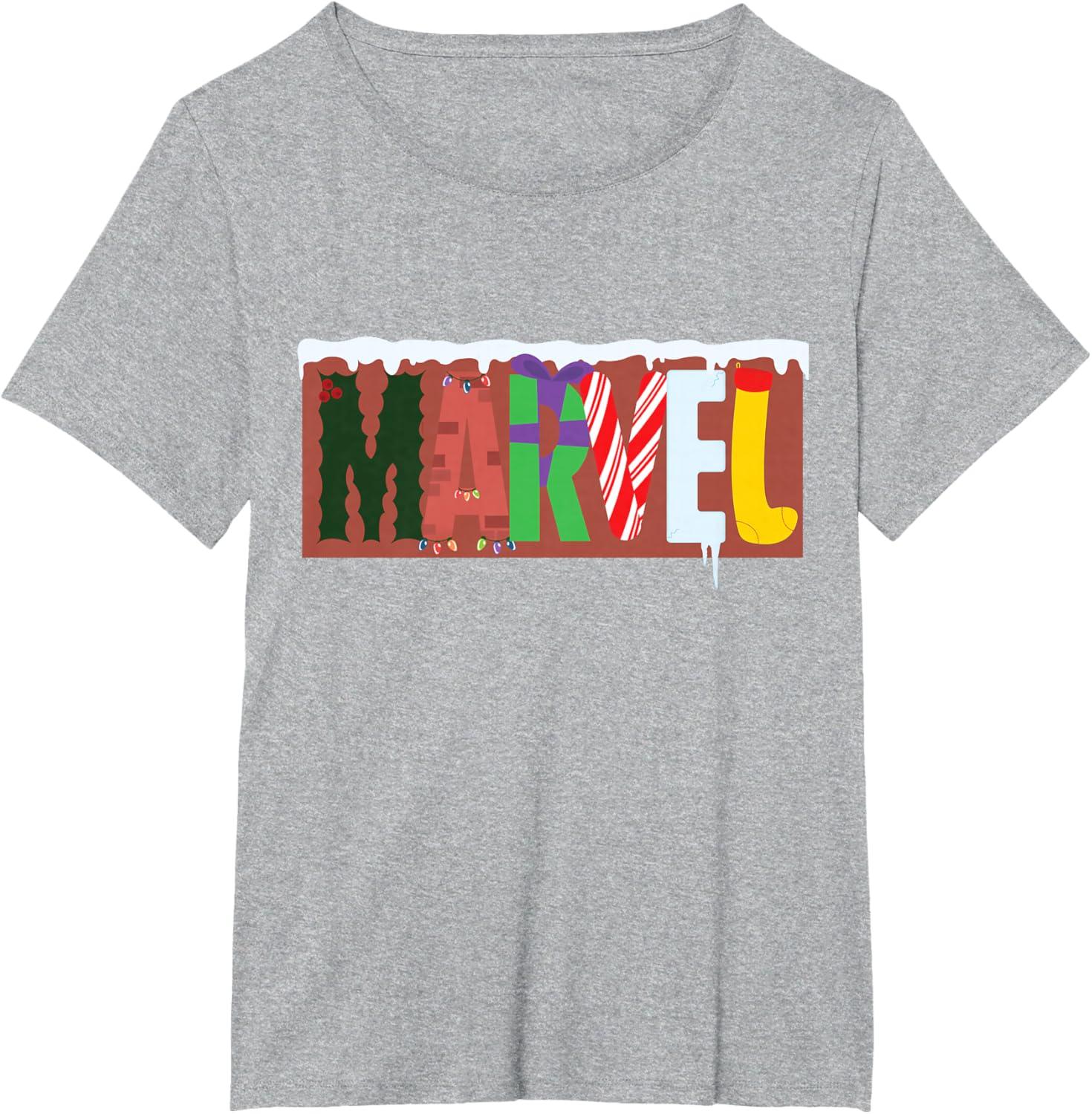 Marvel Logo with Christmas Holiday Avengers Decorations T-Shirt(Heather Grey)