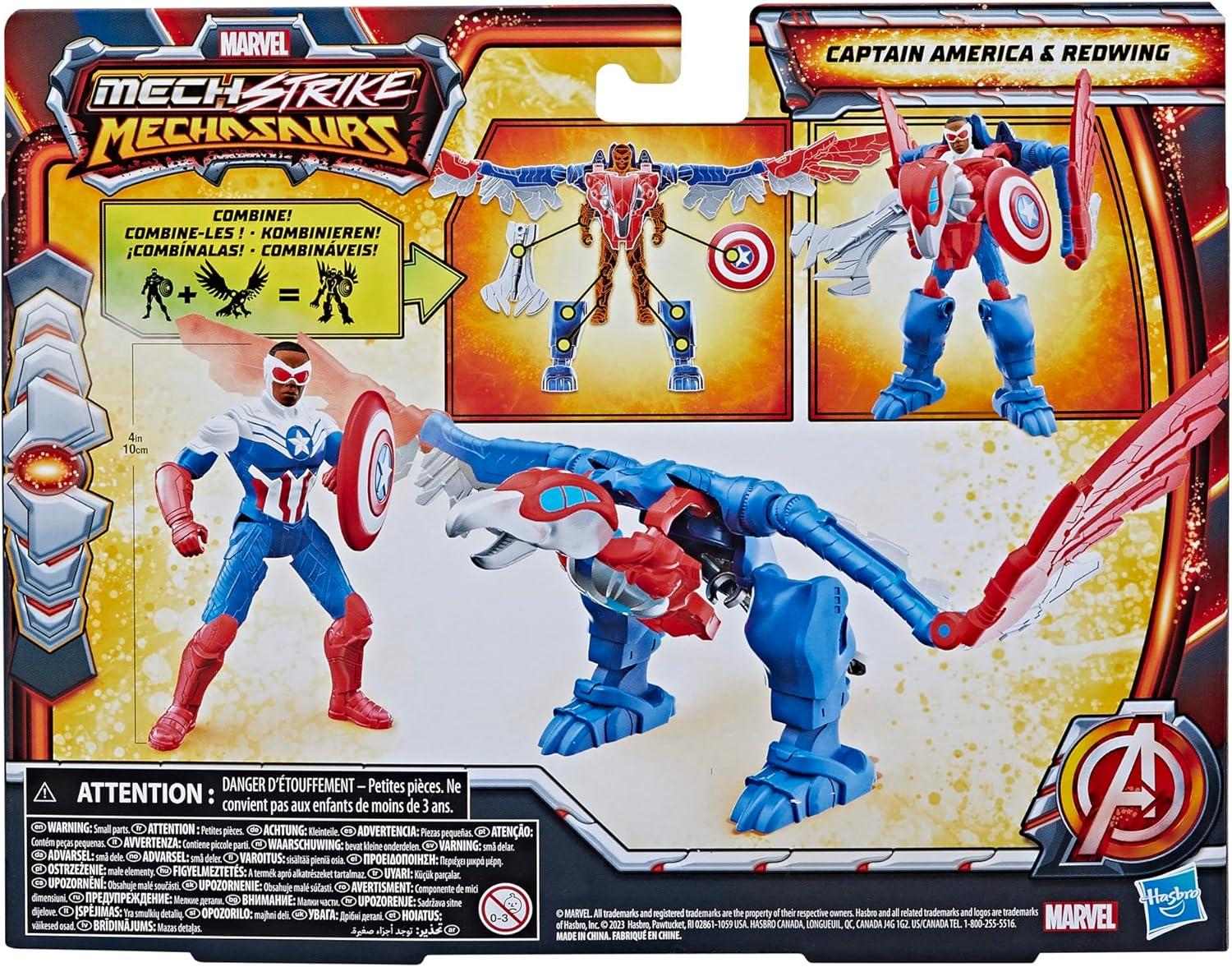 Marvel Mech Strike Mechasaurs, 4-Inch Captain America with Redwing Mechasaur Action Figures, Super Hero Toys for Kids Ages 4 and Up