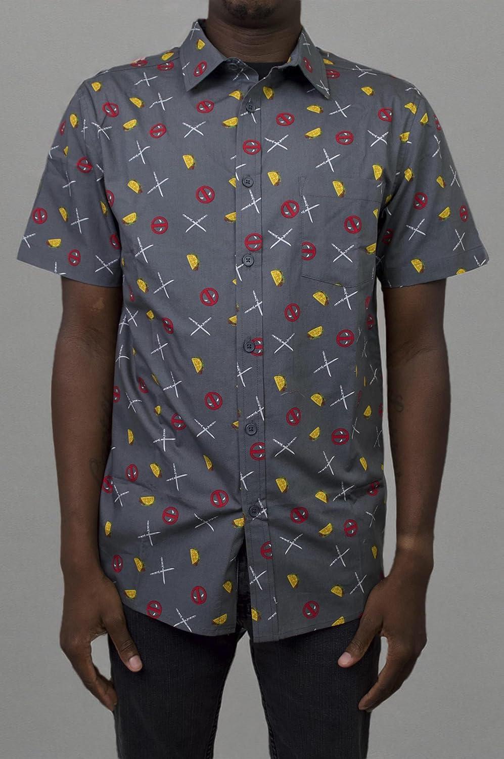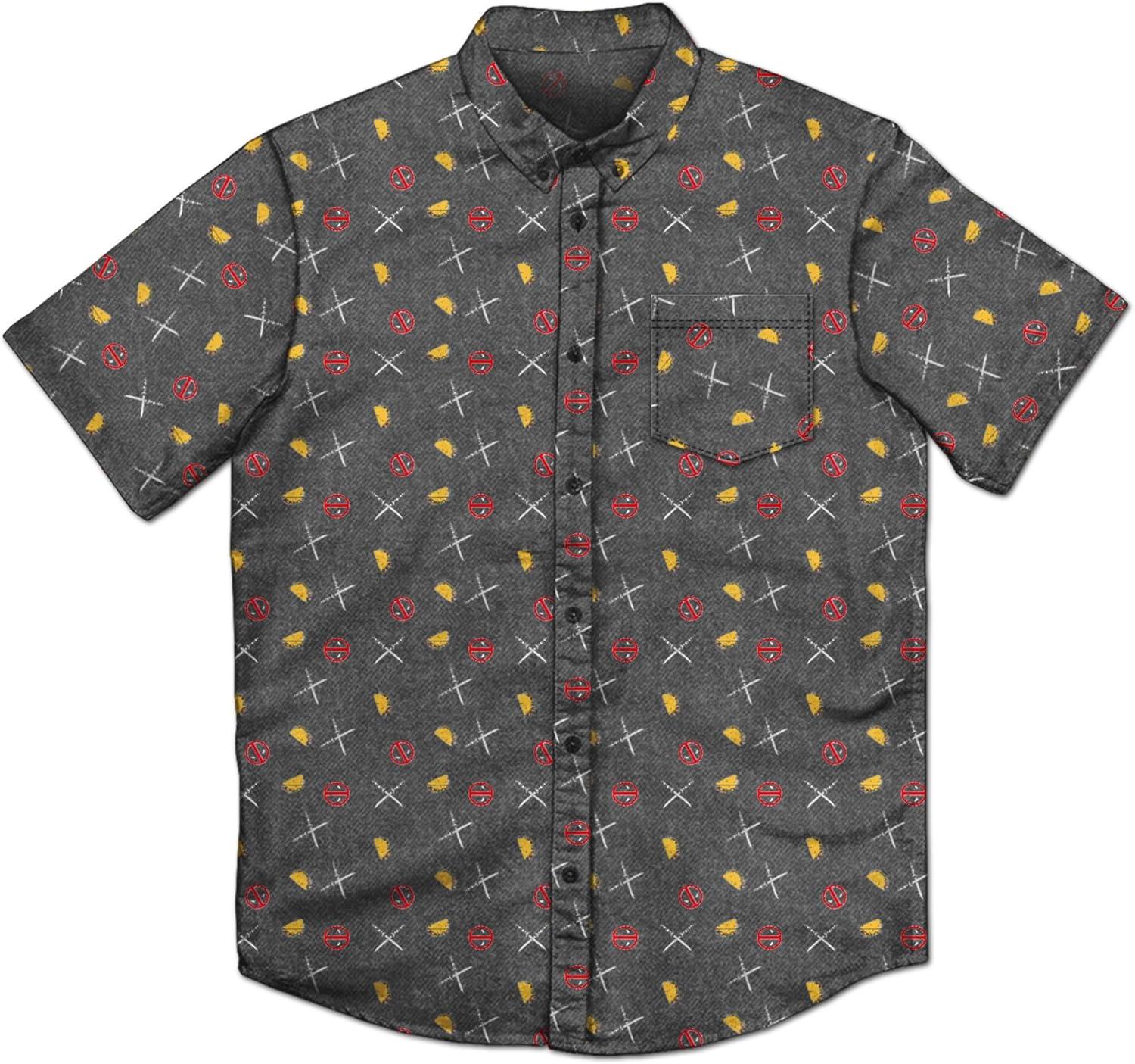Marvel Men's Button Down Shirt(Charcoal "Deadpool Party")