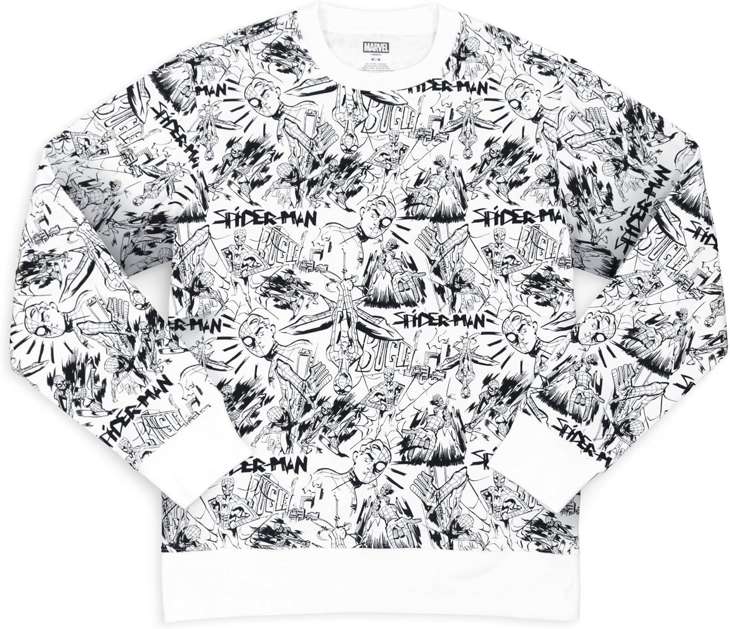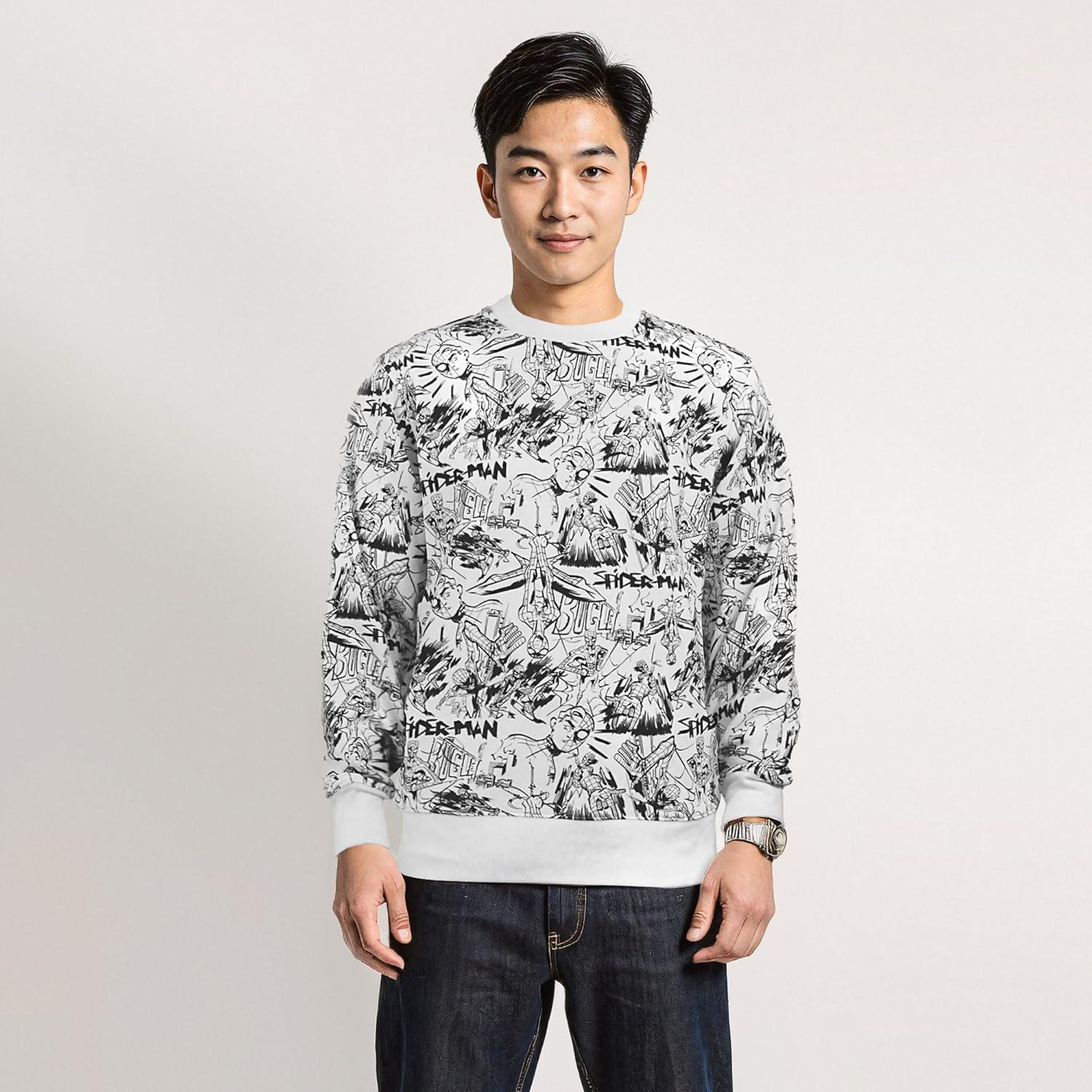 Marvel Men’s Spiderman Classic Ink Spider Comic Pullover Crew Fleece(White)